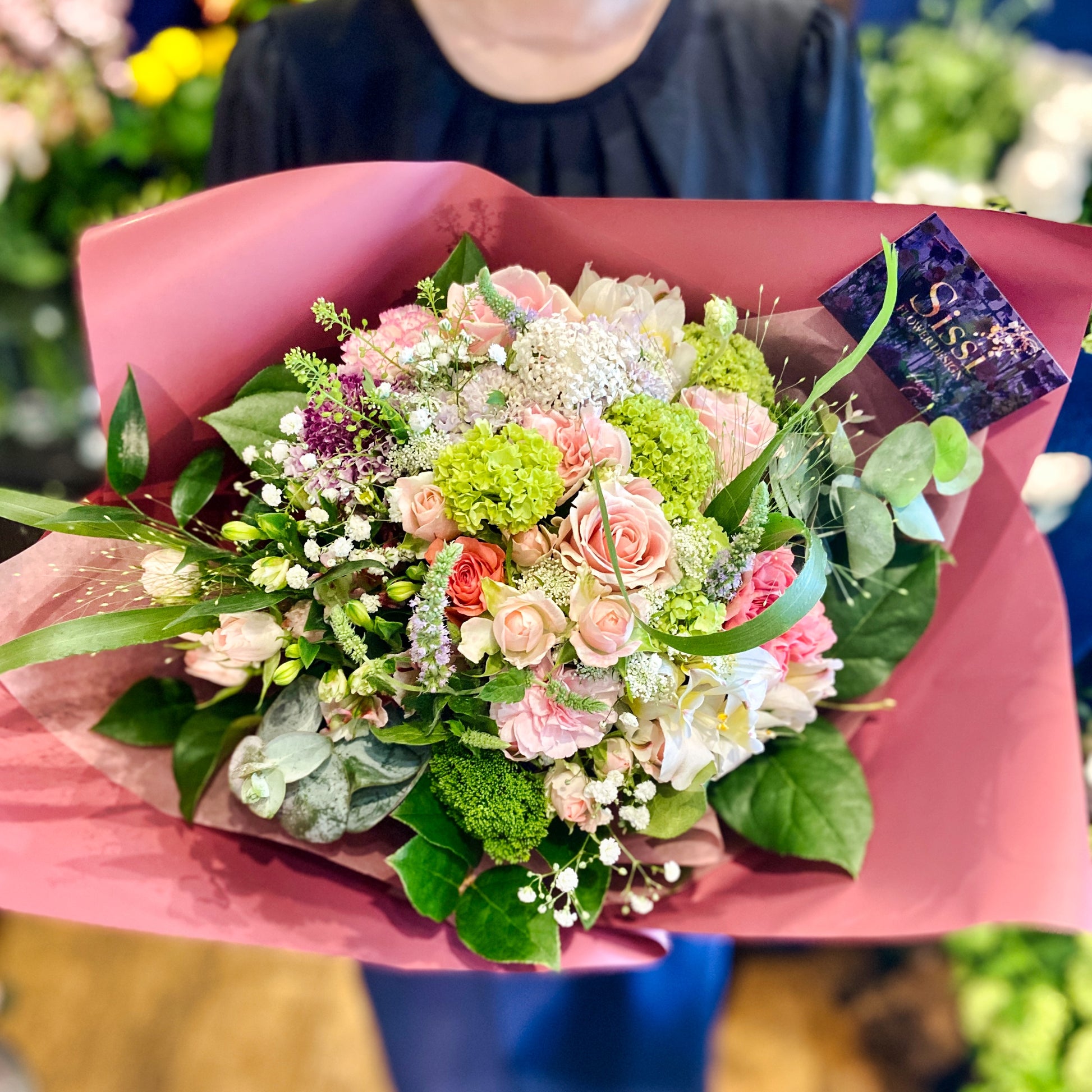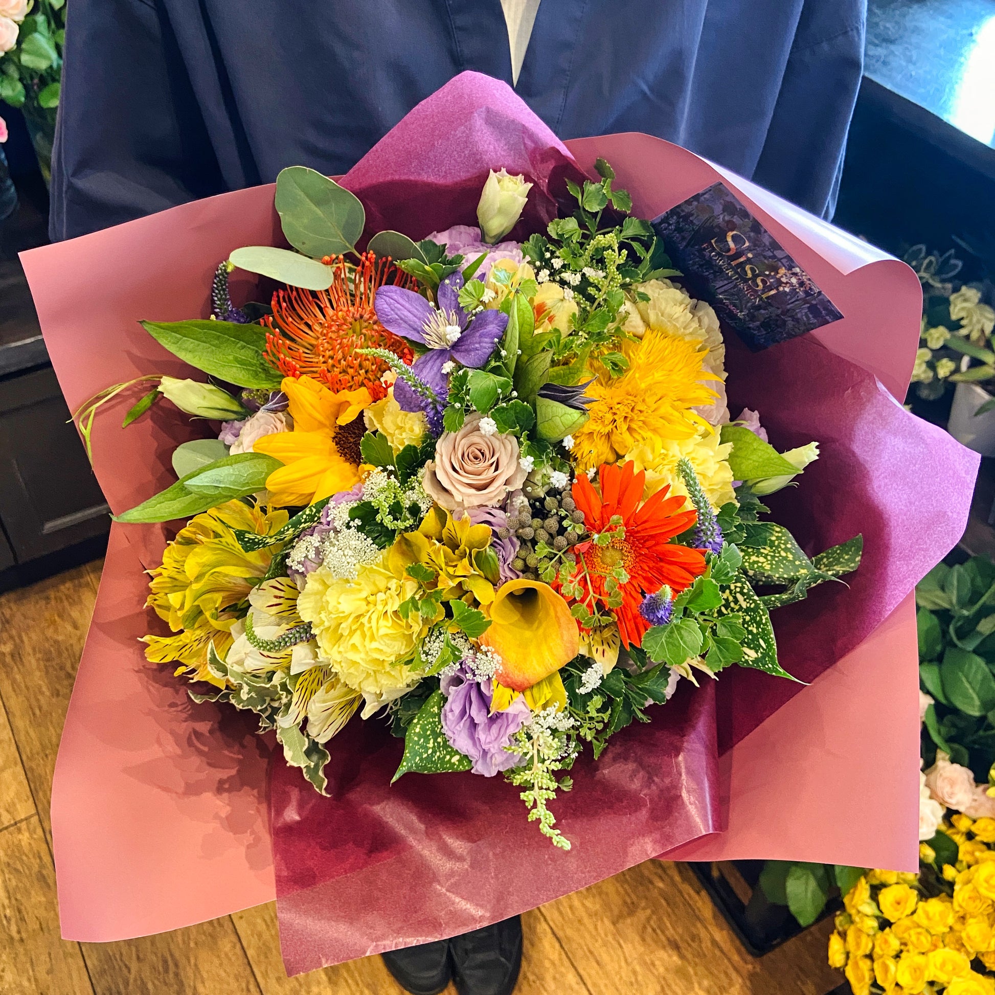 普通とは違う1ランク上のオシャレな花束に制作いたします。 「プロのデザイナーに作ってもらいたい...」また「オシャレな花を贈りたい」と思われているお客様にご満足していただけると思います。