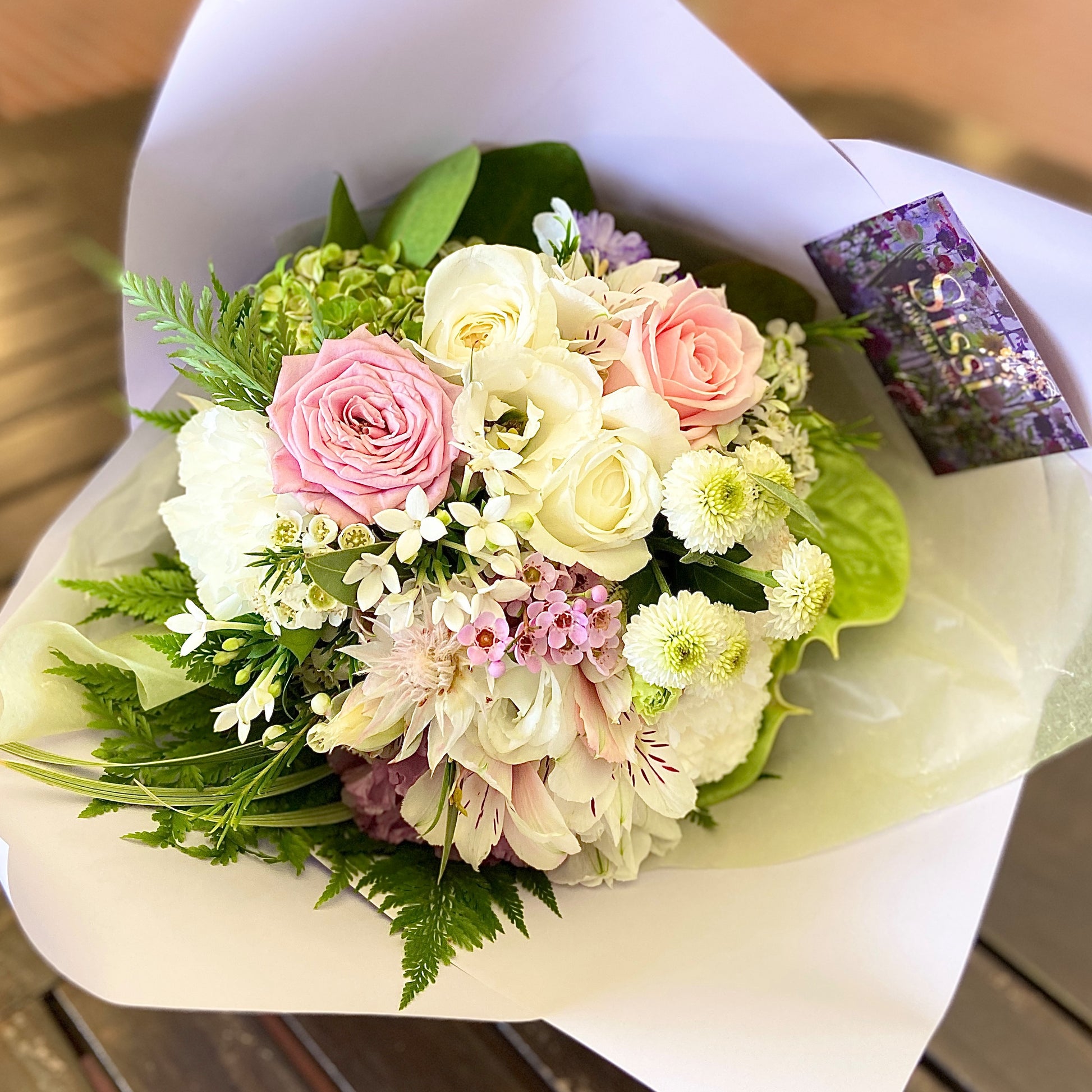 花束は国家検定フラワー装飾技能士1級とドイツ政府認定フローリスト資格を持った名店花屋で修行してきたプロのデザイナーが一つずつ制作致します。花の方は基本おまかせにさせていただいておりますが、ご要望があればお伝え下さい。