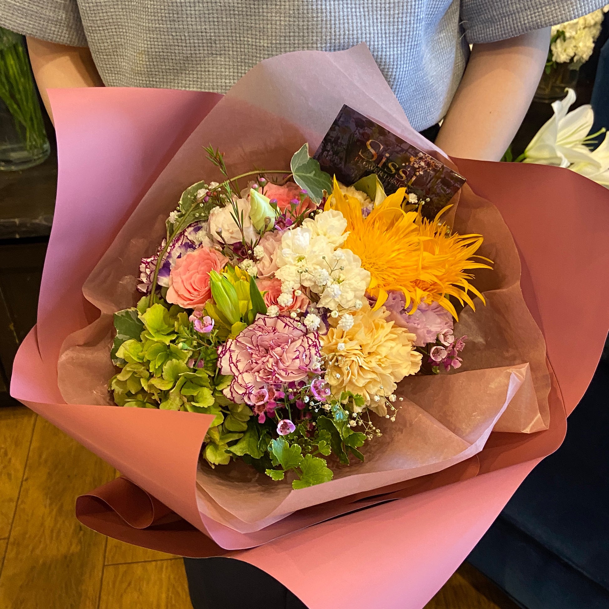 普通とは違う1ランク上のオシャレな花束に制作いたします。 「プロのデザイナーに作ってもらいたい...」また「オシャレな花を贈りたい」と思われているお客様にご満足していただけると思います。