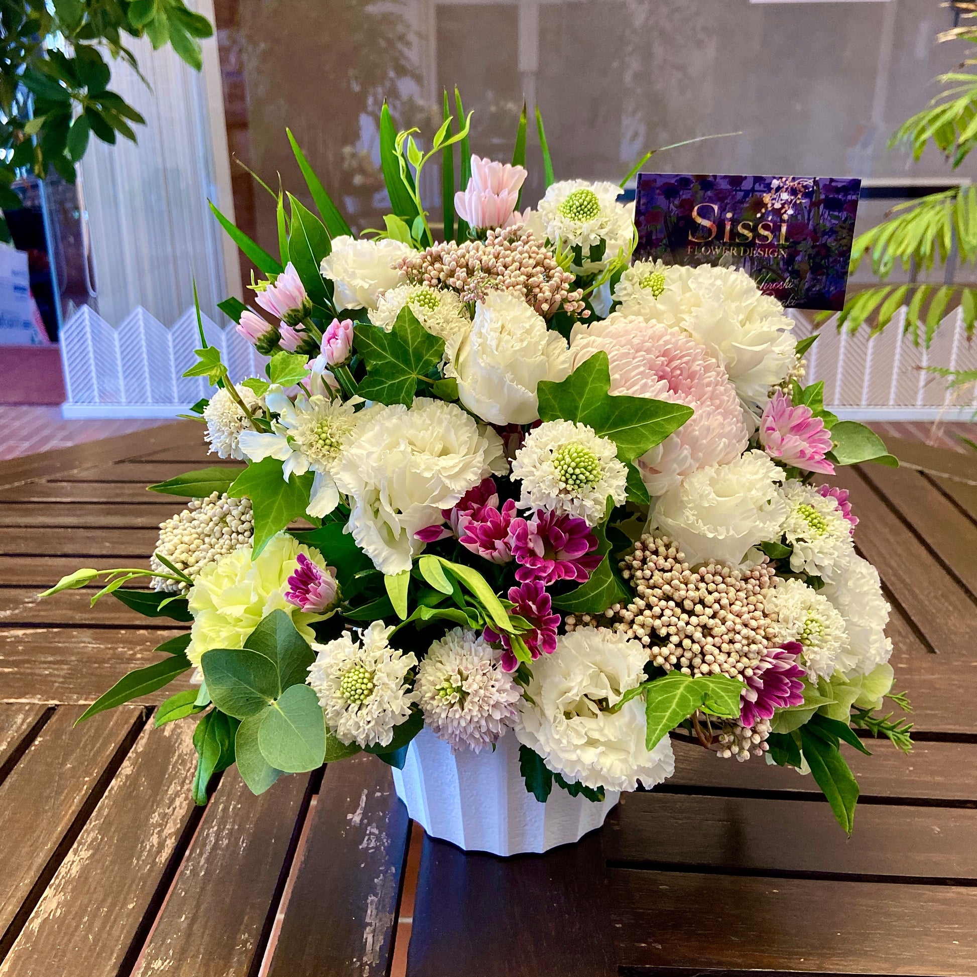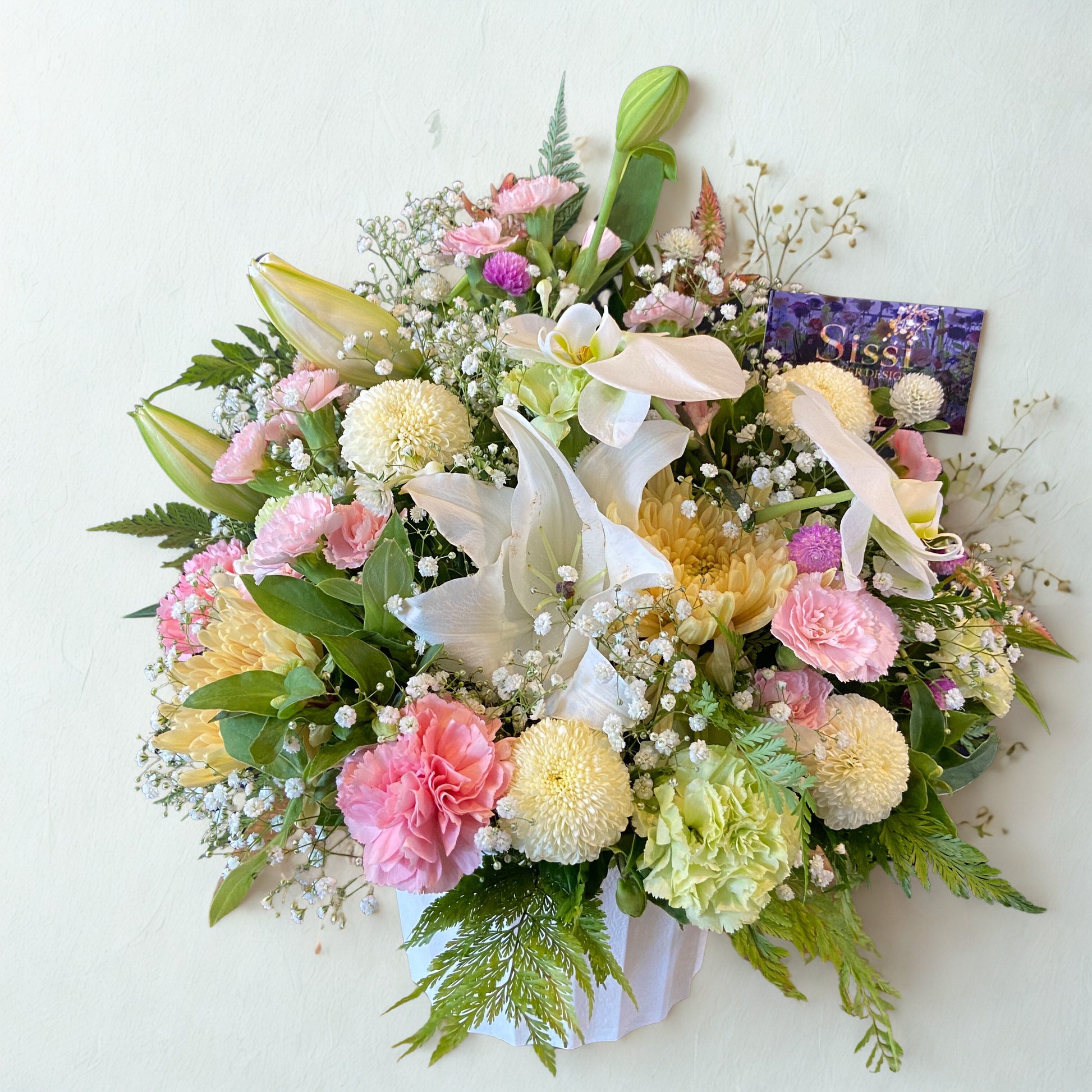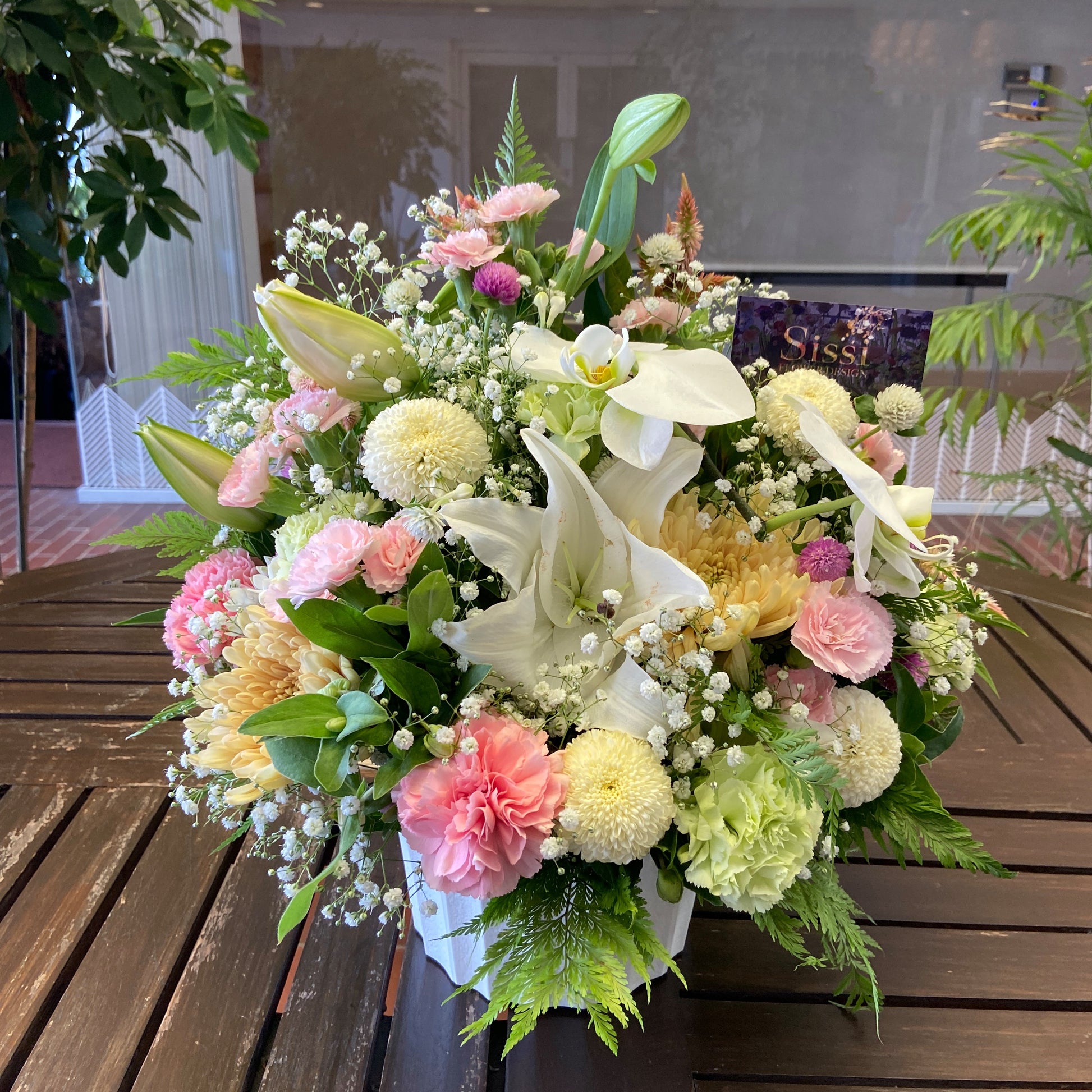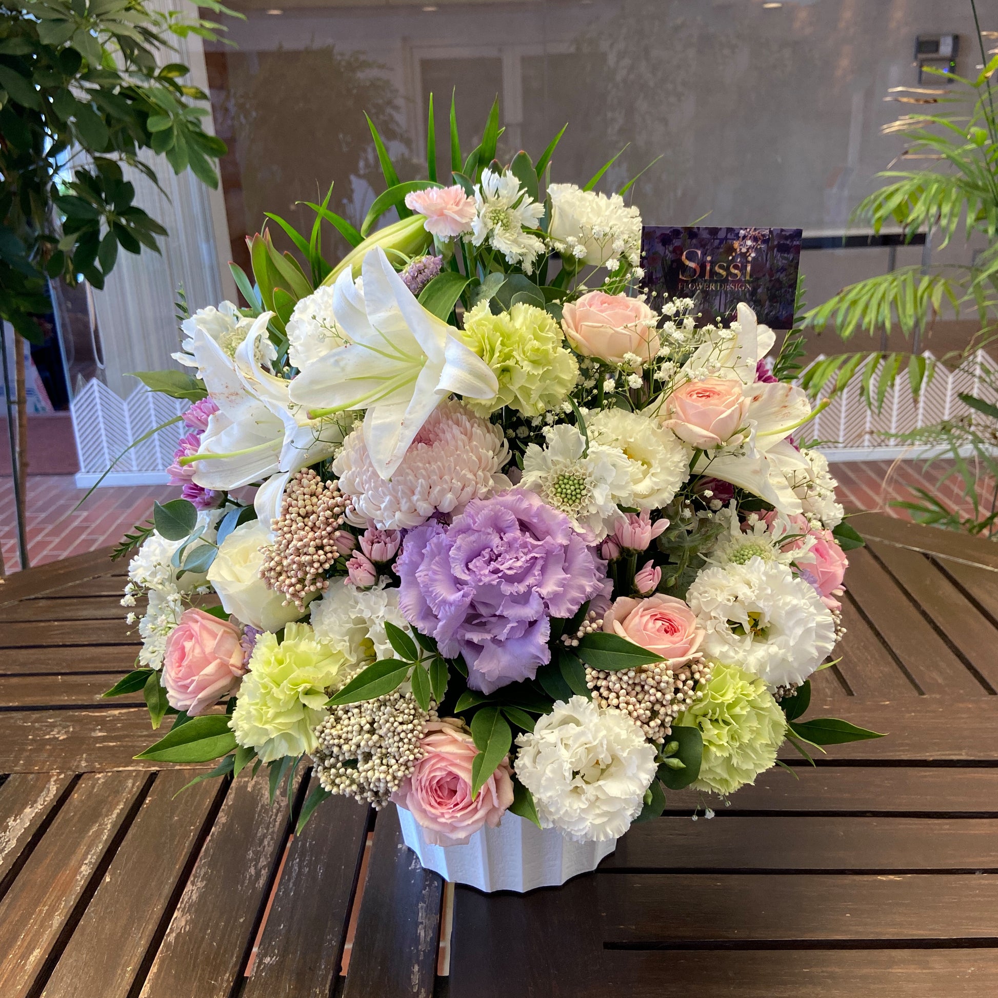 *アレンジメントは生花ですので、仕入れの状況などにより花材やサイズが変更となりますのでご了承ください。 (