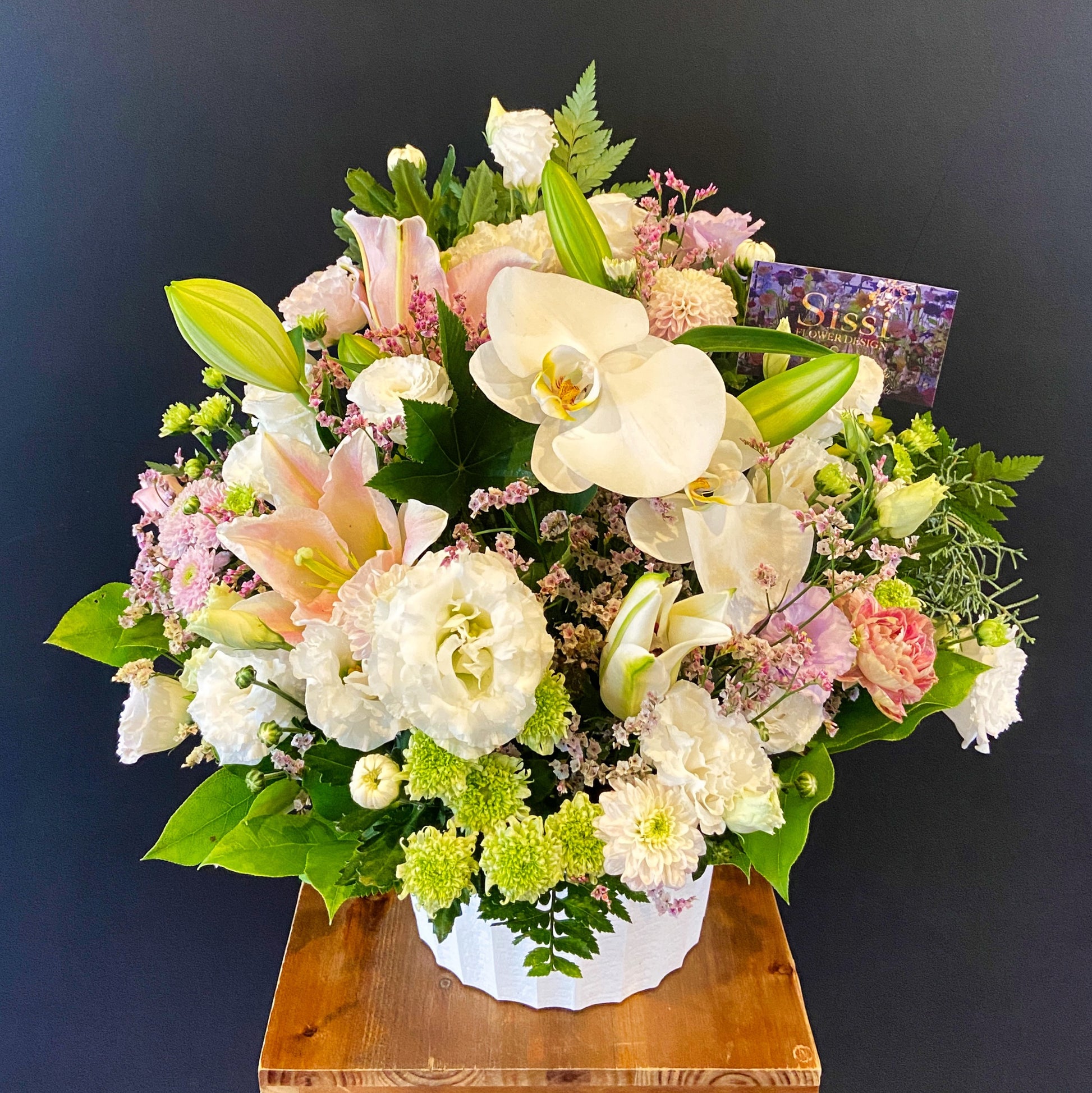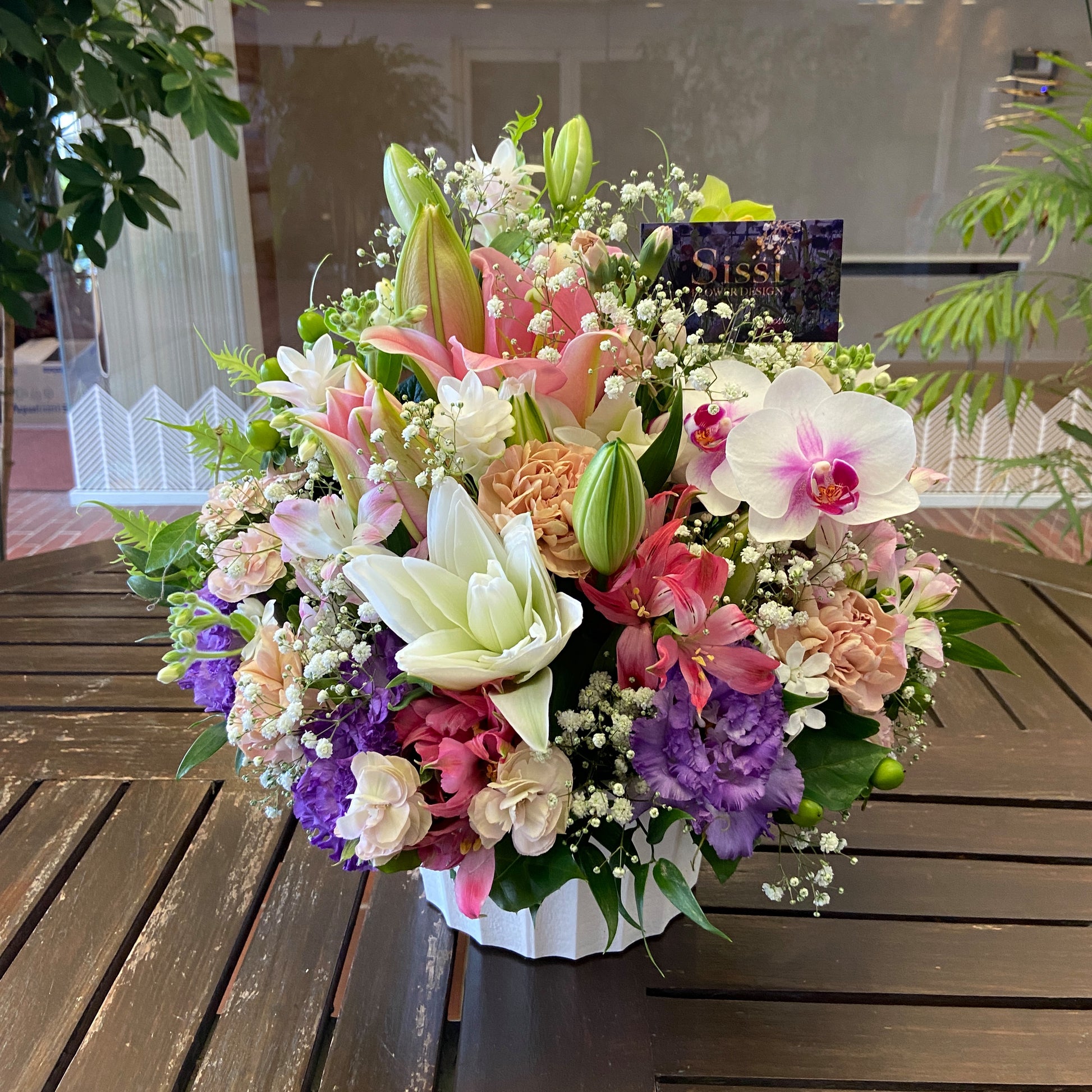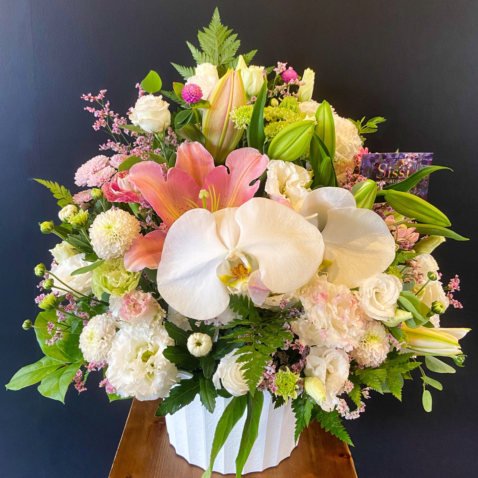 *アレンジメントは生花ですので、仕入れの状況などにより花材やサイズが変更となりますのでご了承ください。 (