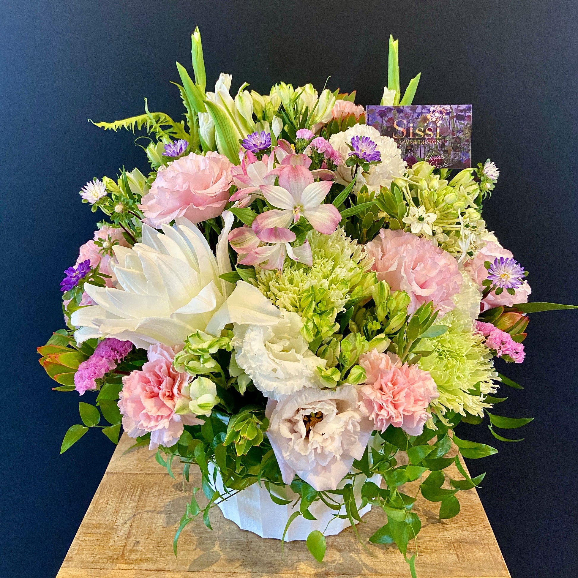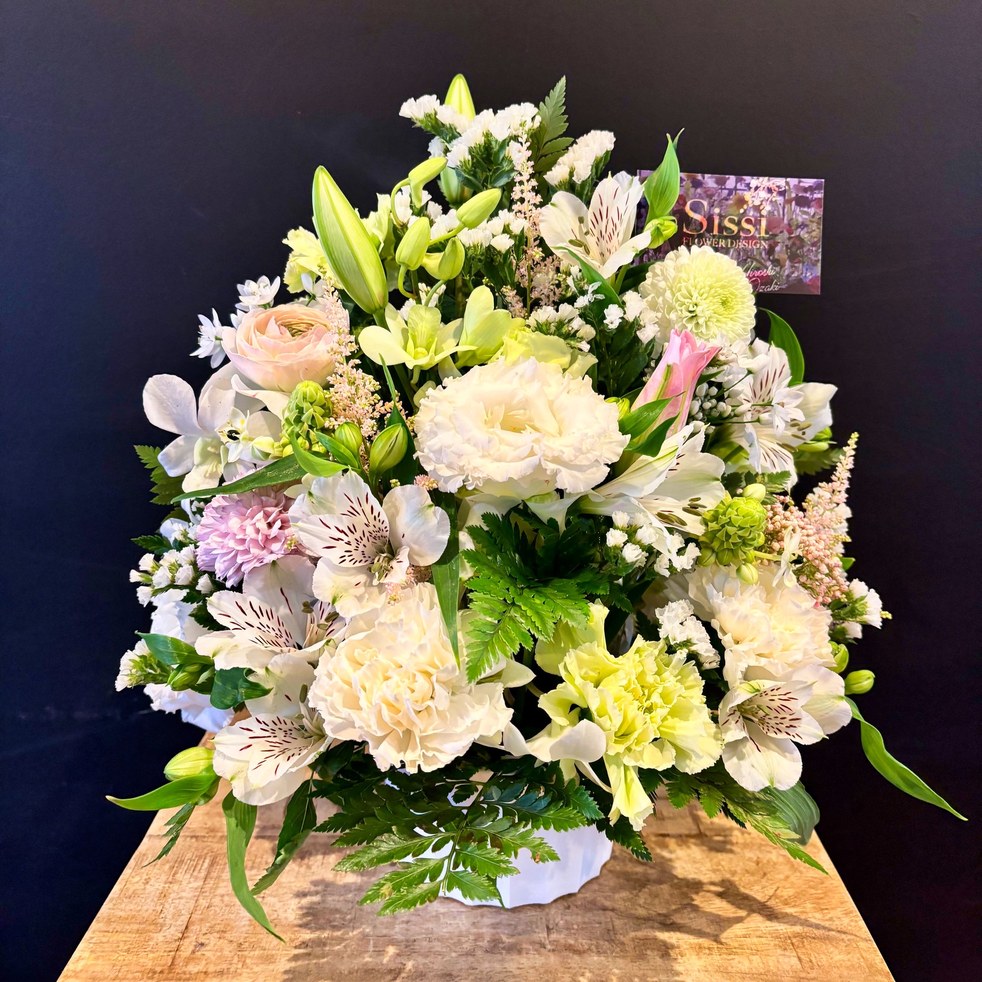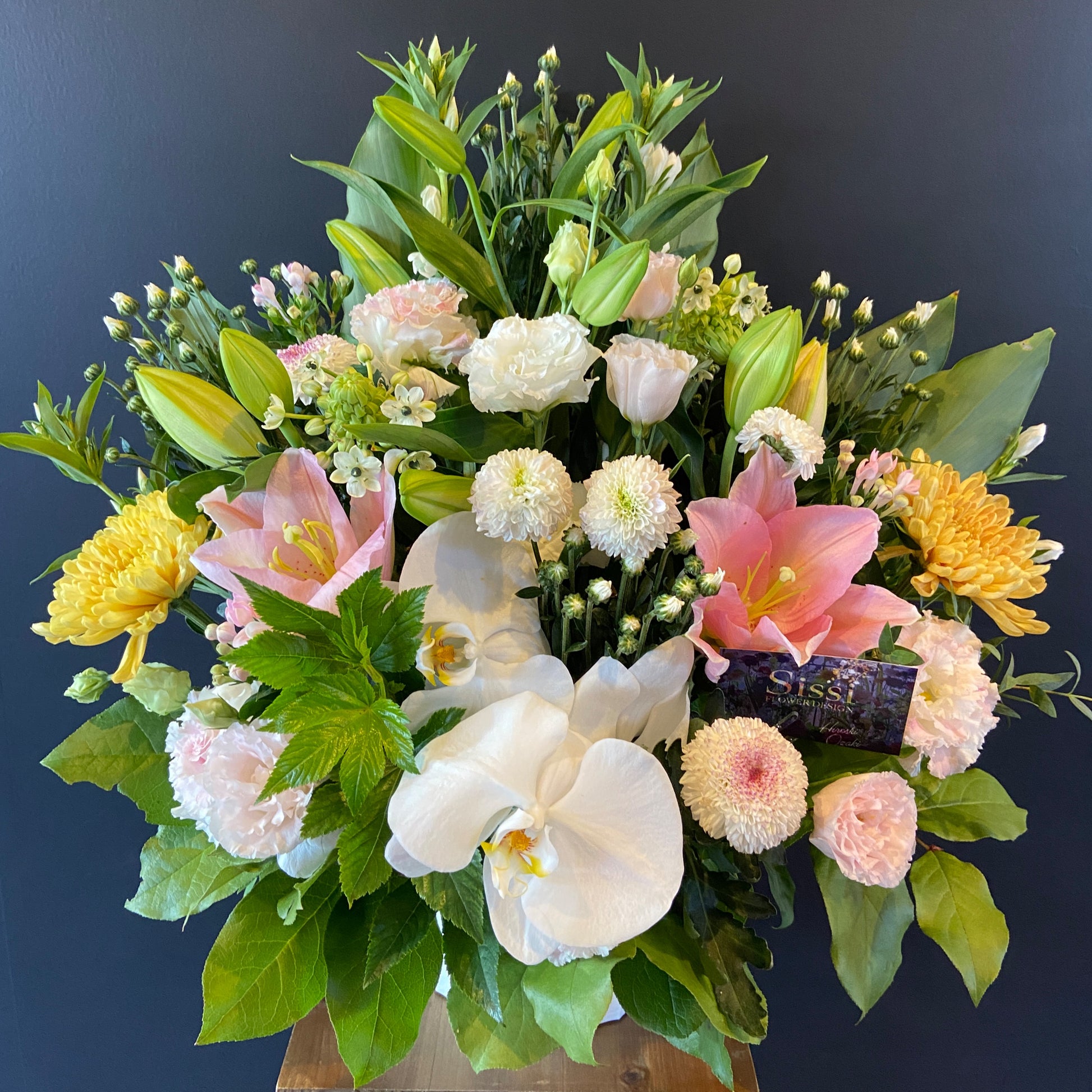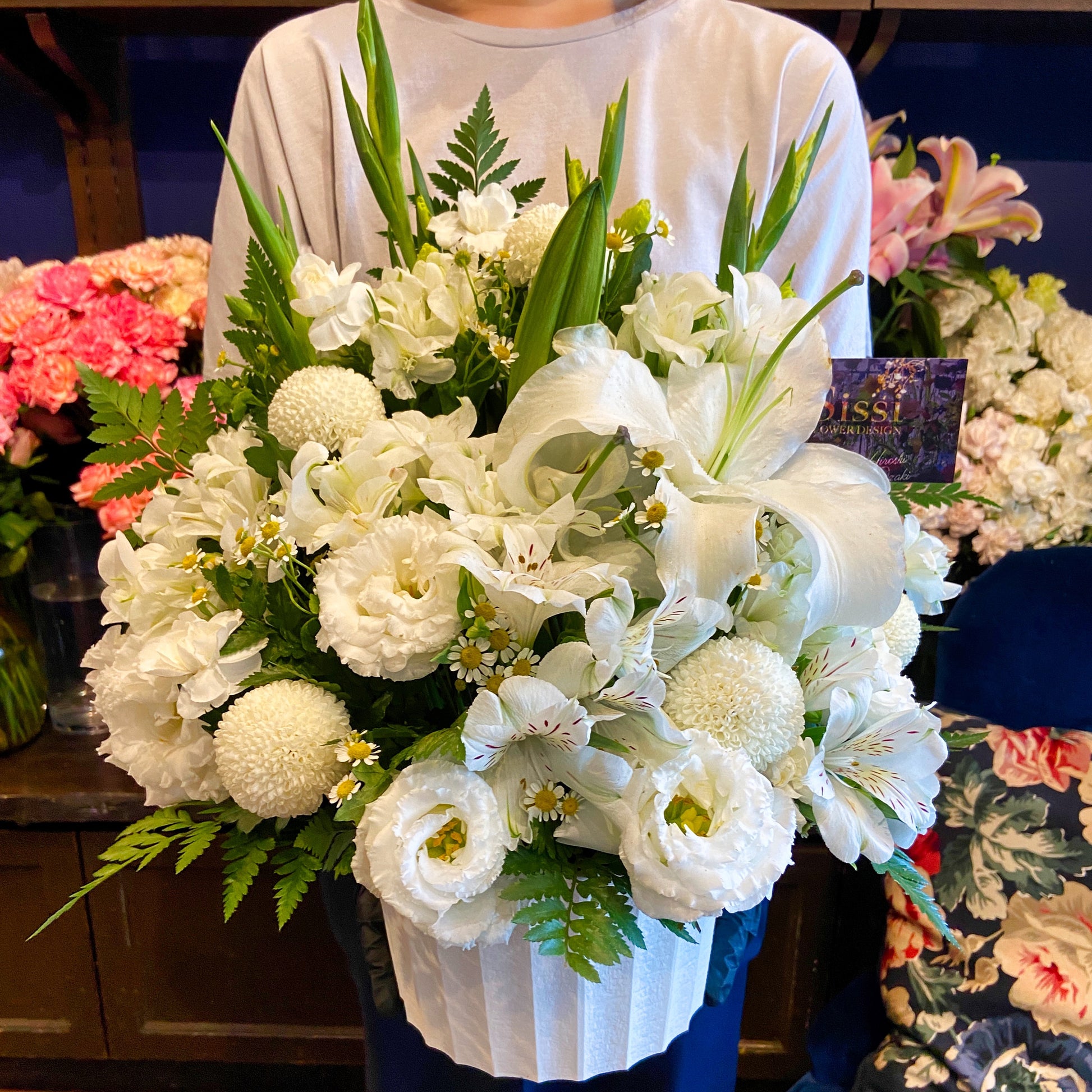 *アレンジメントは生花ですので、仕入れの状況などにより花材やサイズが変更となりますのでご了承ください。 (
