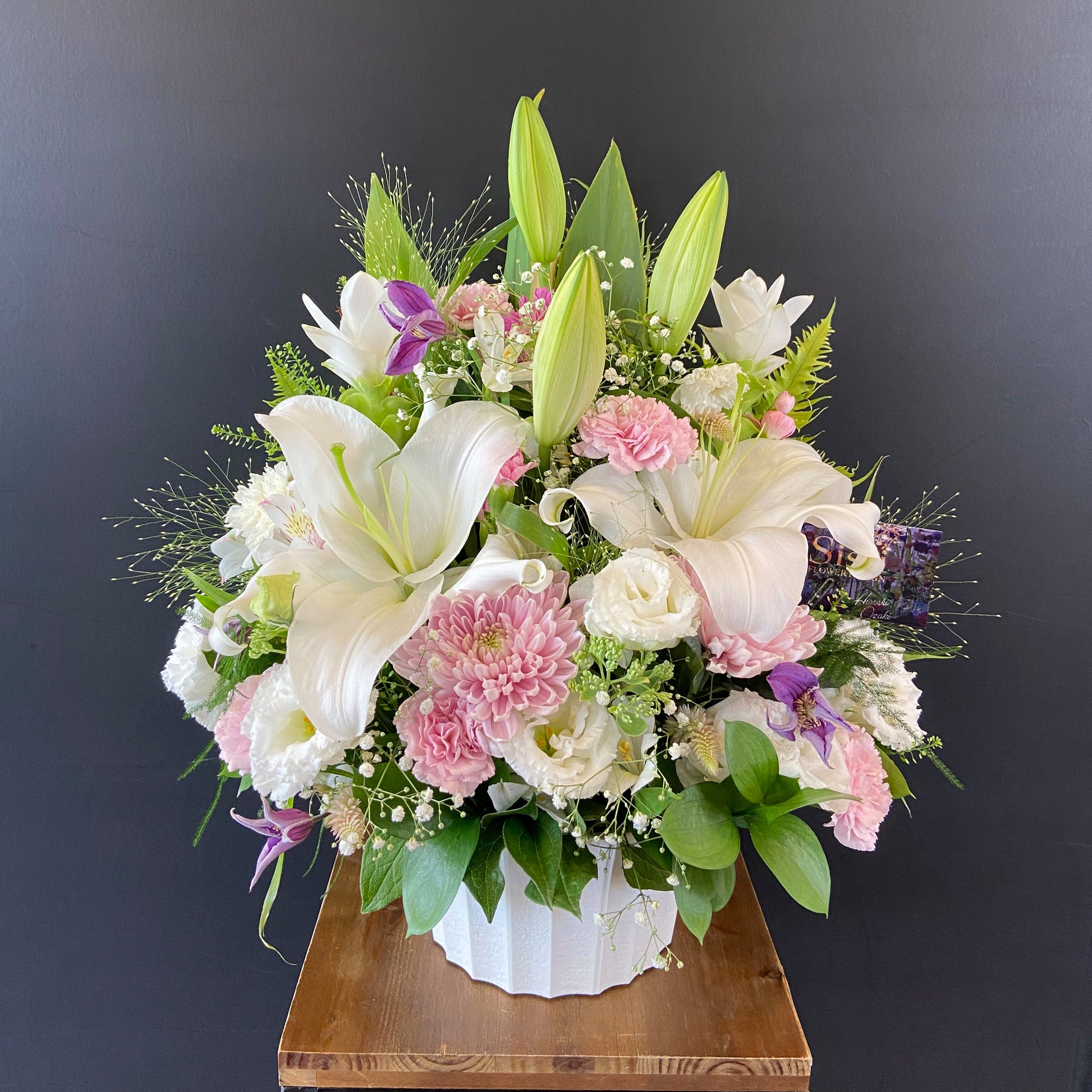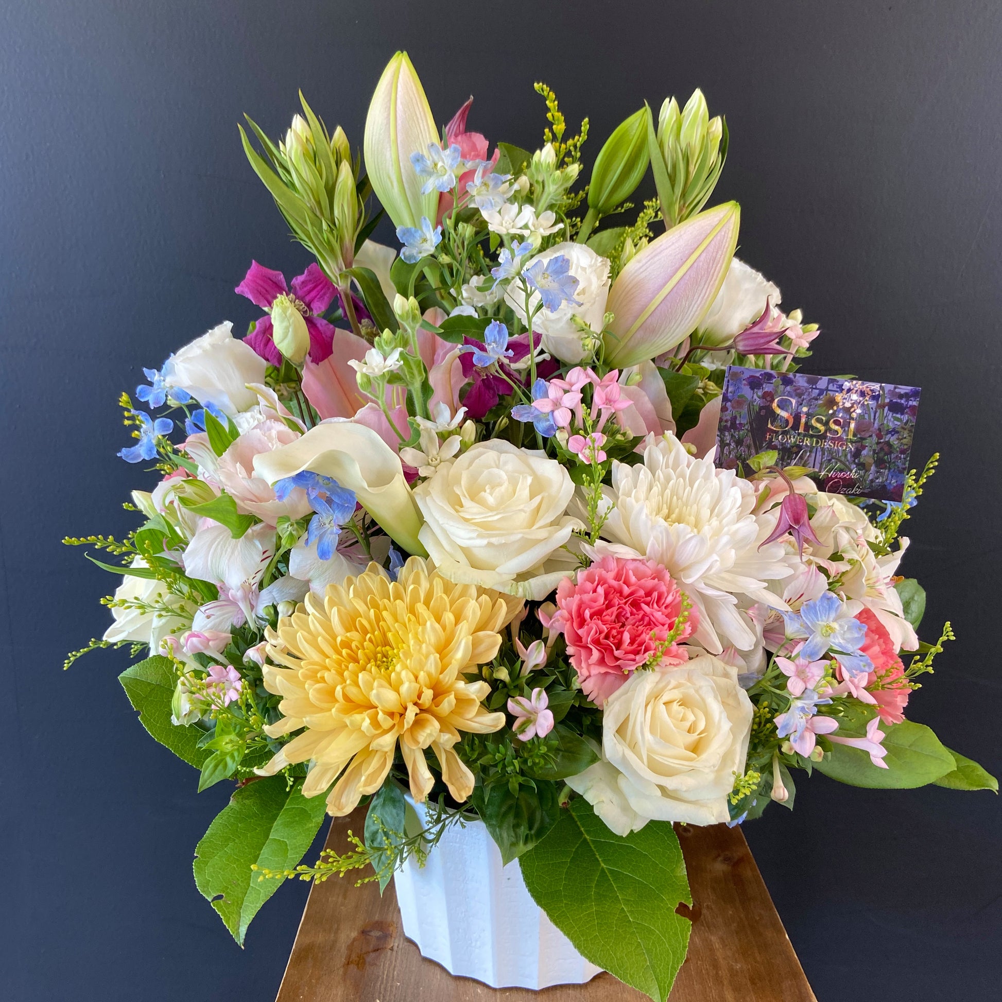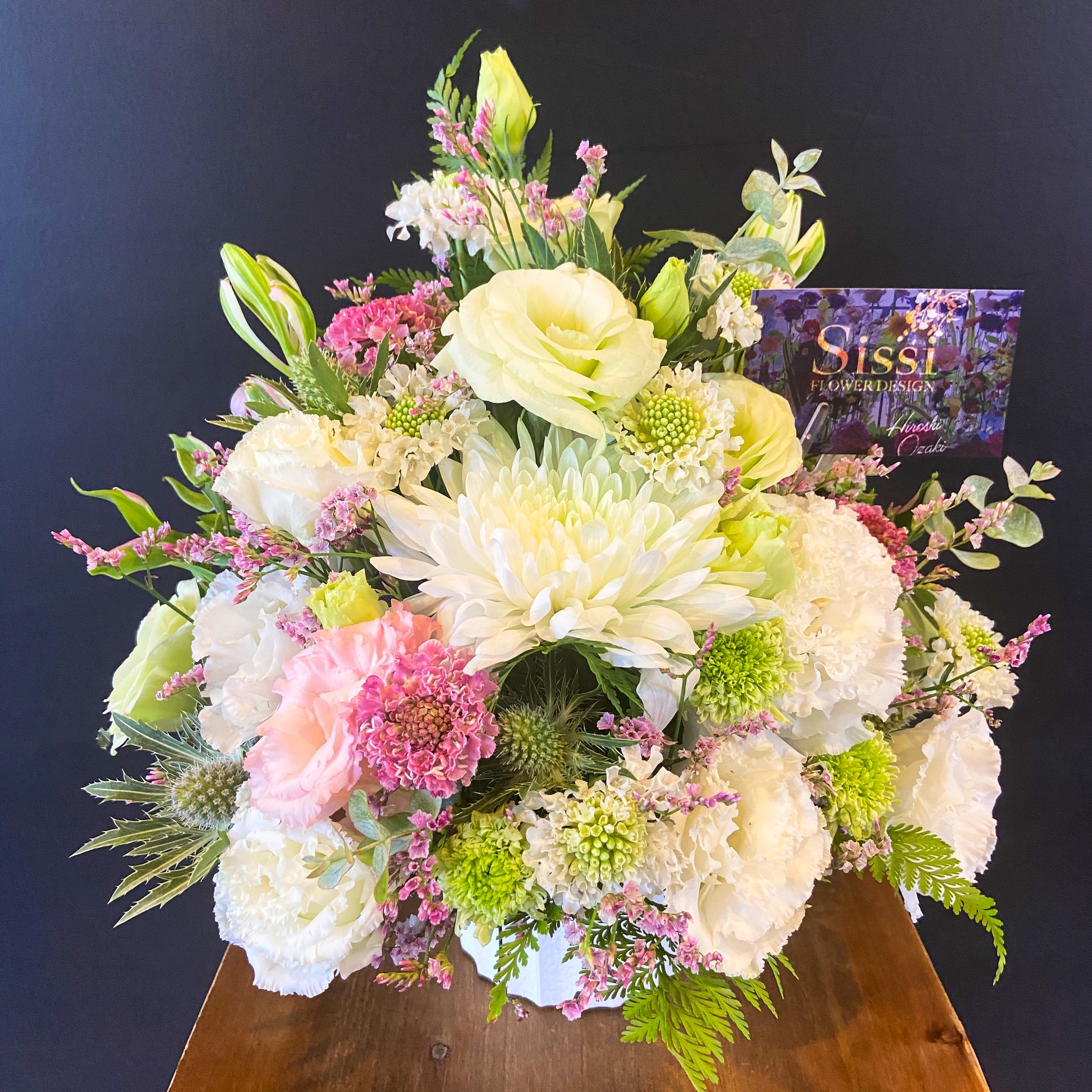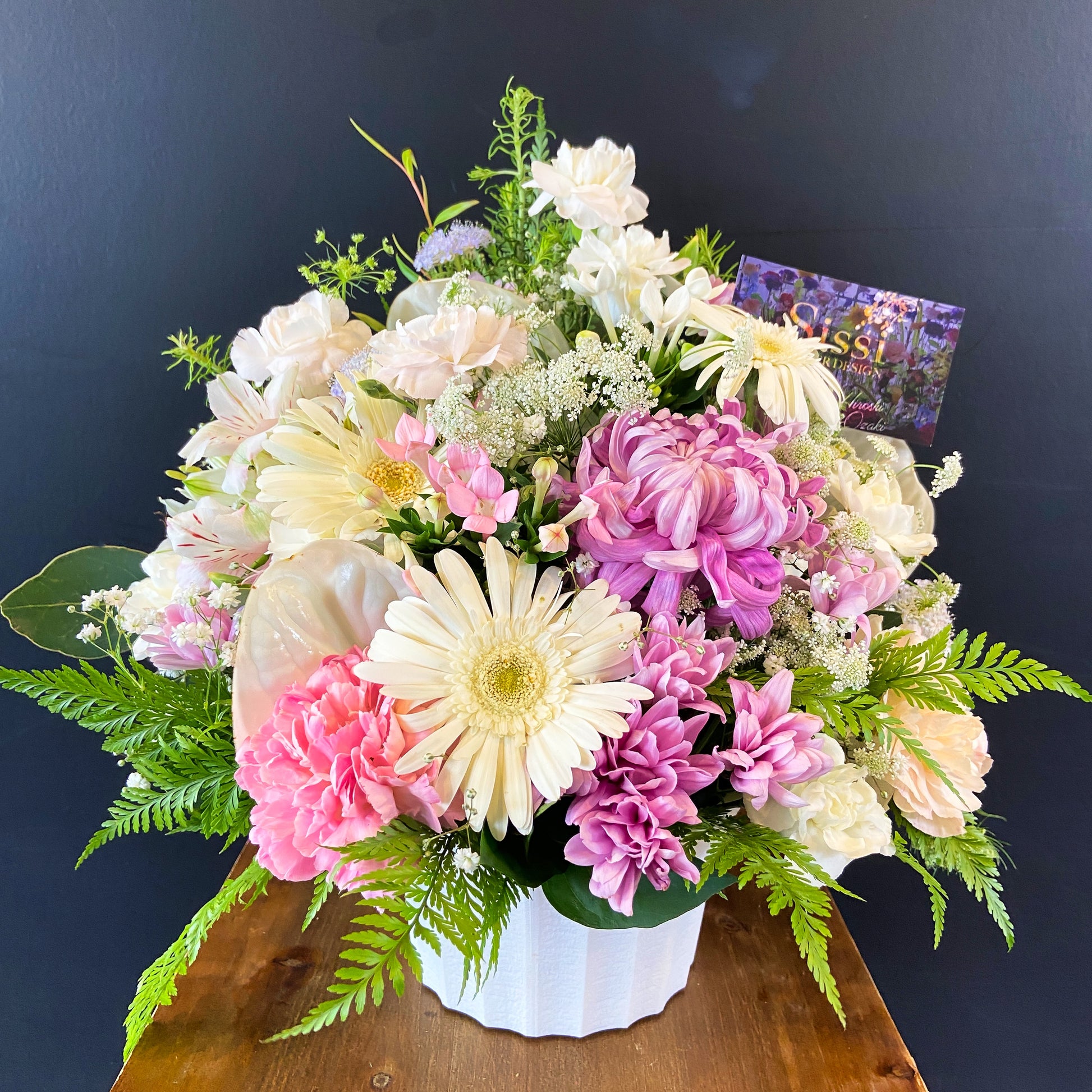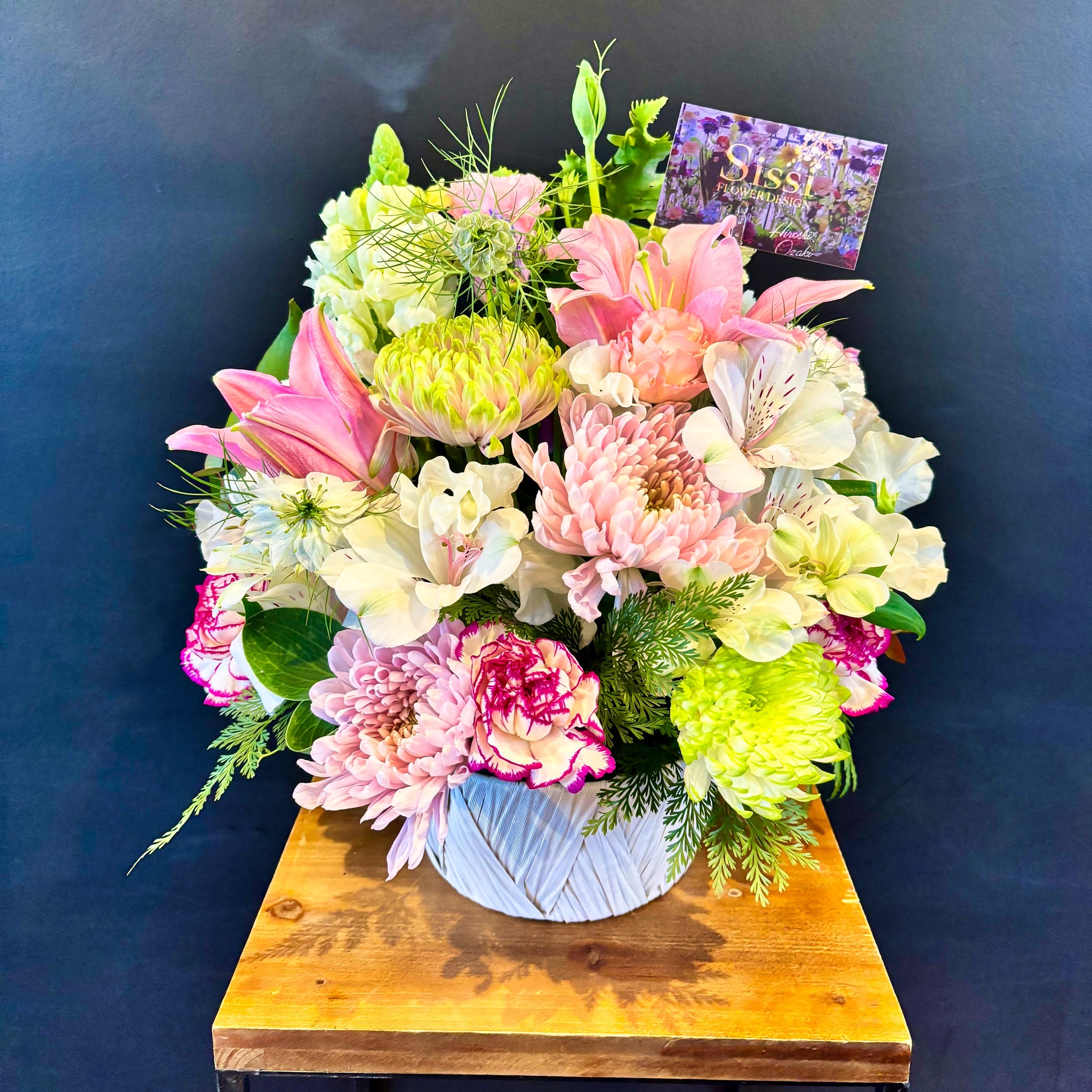 *アレンジメントは生花ですので、仕入れの状況などにより花材やサイズが変更となりますのでご了承ください。 (