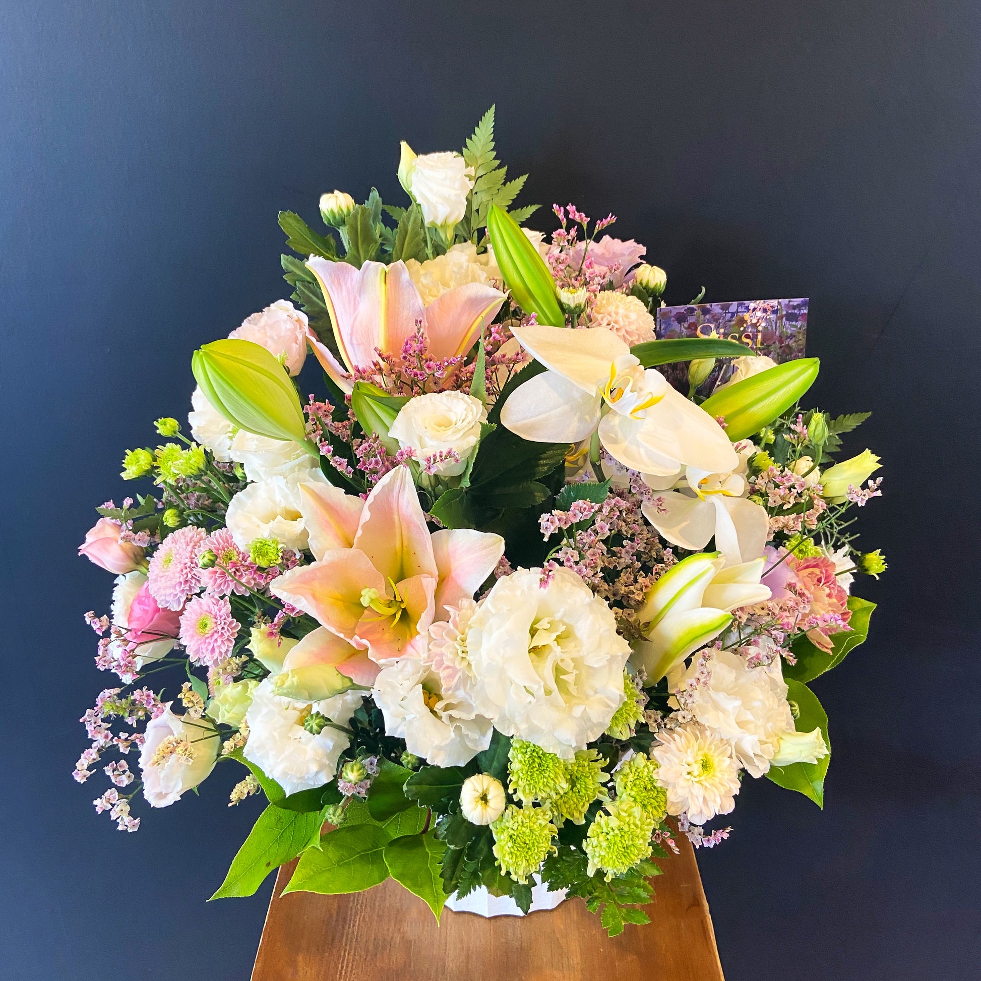 ※メッセージカードのデザインやメッセージ内容については、お花のご用途や先様の情報を元に当店でセレクトさせて頂きます