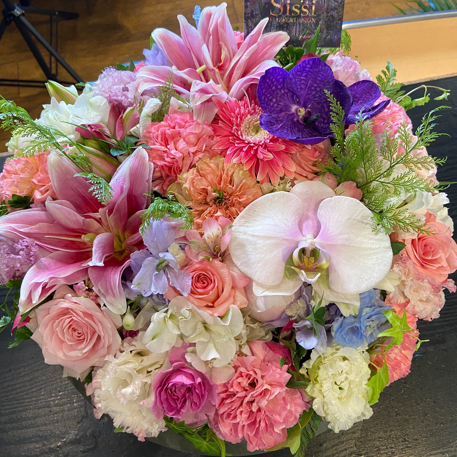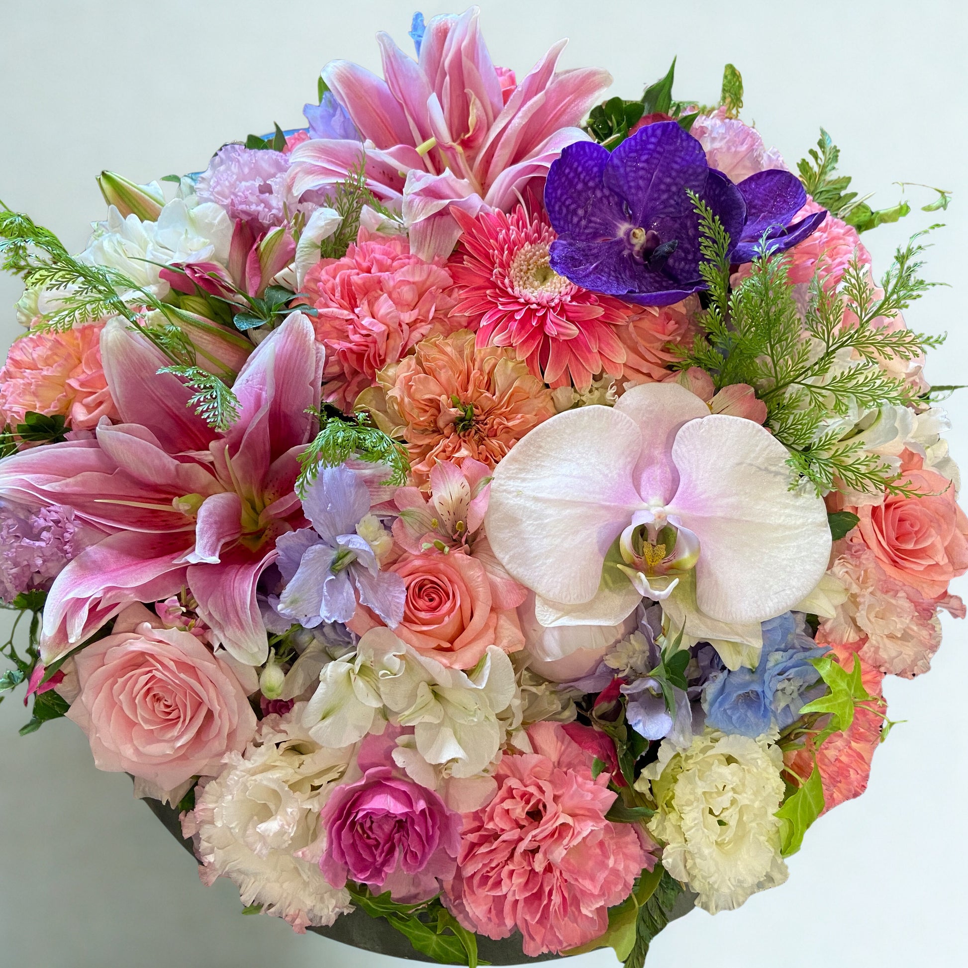 1ランク上のオシャレなアレンジメントに制作いたします。「プロのデザイナーに作って貰いたい...」また「オシャレな花を贈りたい」と思われているお客様にご満足していただけると思います。フラワーアレンジメントは国家フラワー装飾技能士1級 とドイツ政府認定フローリスト資格を持った名店花屋で修行してきたプロのデザイナーが一つ一つ制作致します。(お日にちに余裕をもってご注文いただければご希望により近いお花を制作させていただきます。)