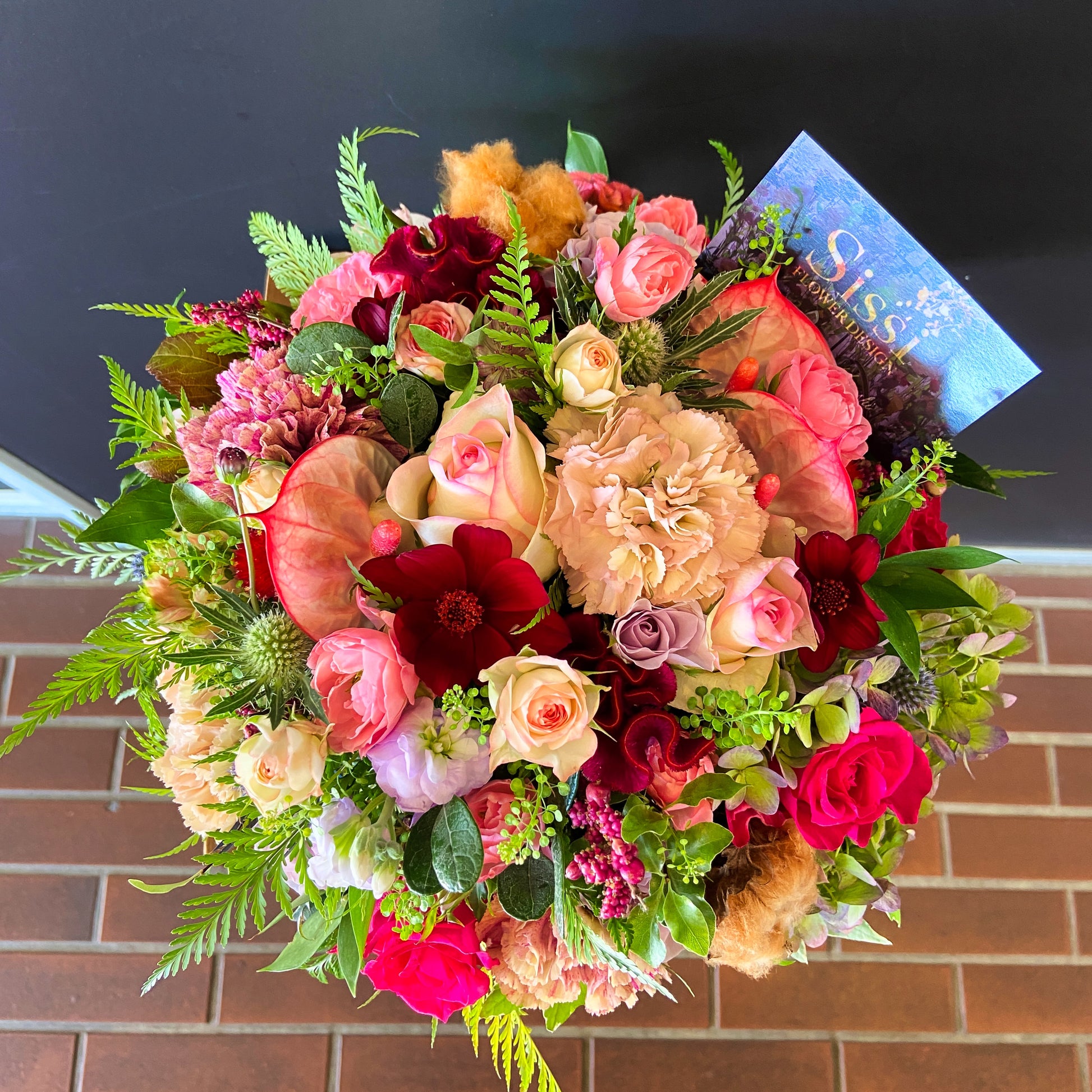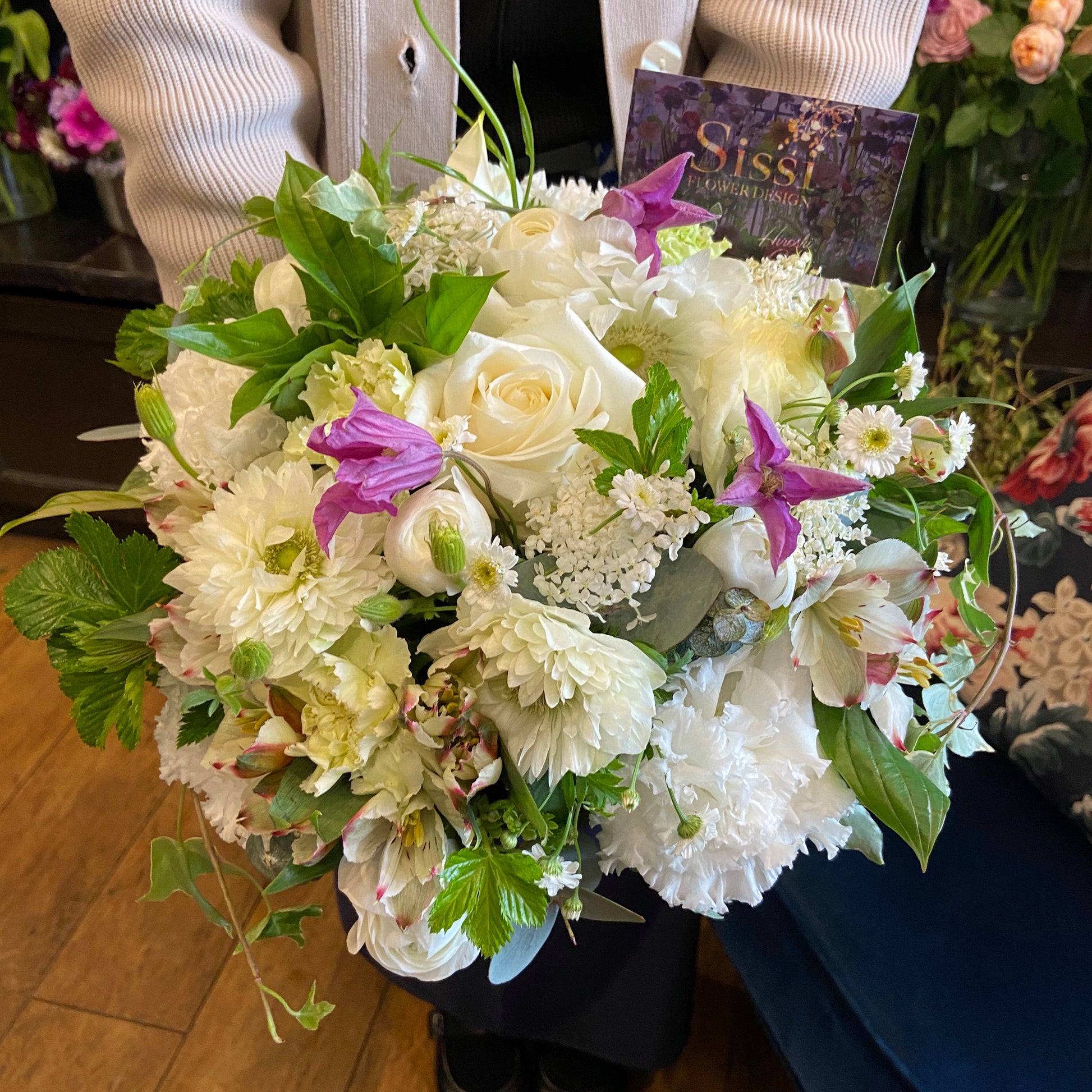 花束は国家検定フラワー装飾技能士1級とドイツ政府認定フローリスト資格を持った名店花屋で修行してきたプロのデザイナーが一つずつ制作致します。花の方は基本おまかせにさせていただいておりますが、ご要望があればお伝え下さい。