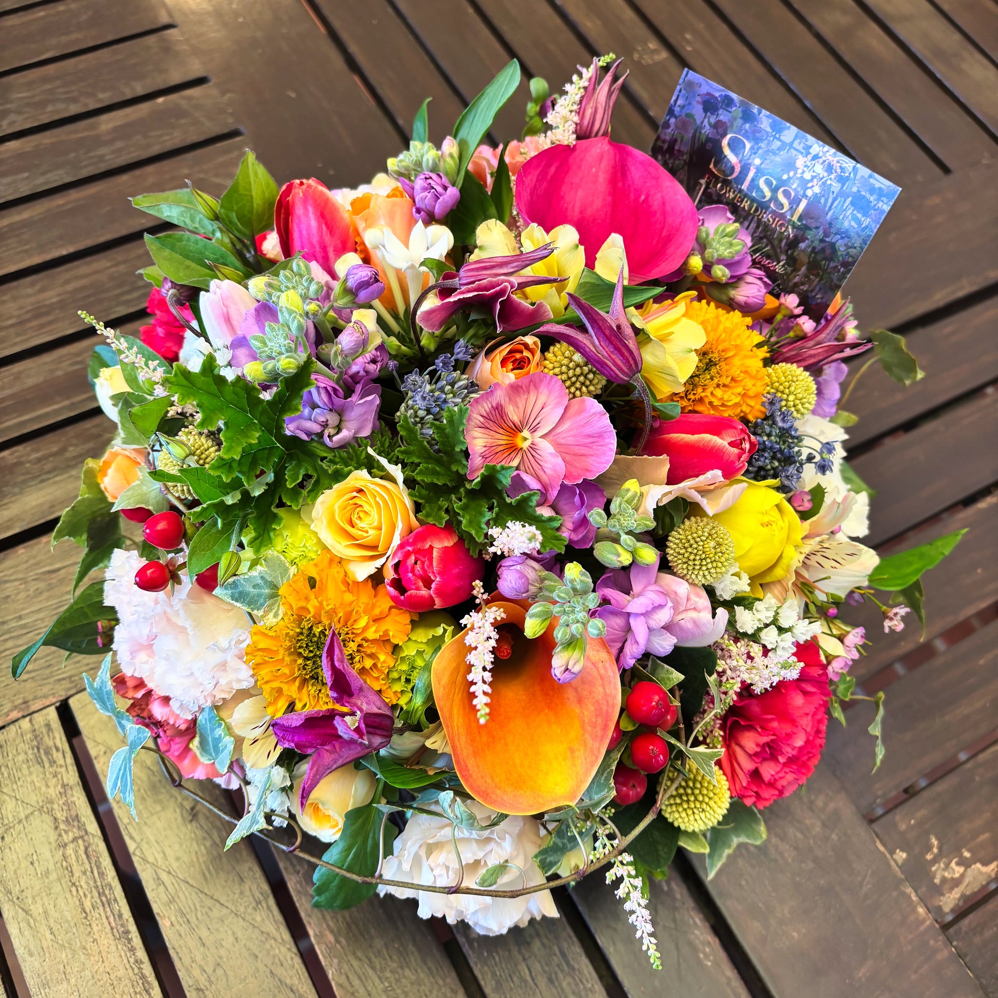花の方は基本おまかせにさせていただいておりますが、ご要望があればお伝え下さい。