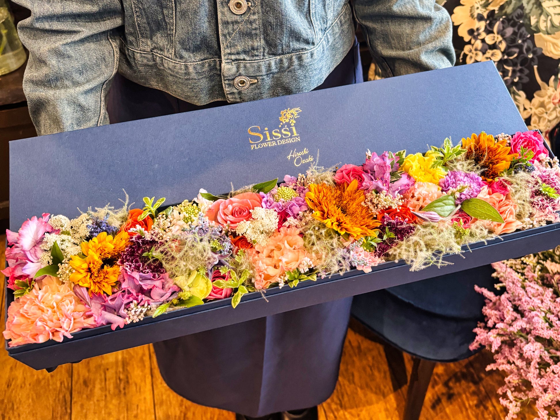 お届けはお花の大きさに合わせた専用BOXでお届けします。