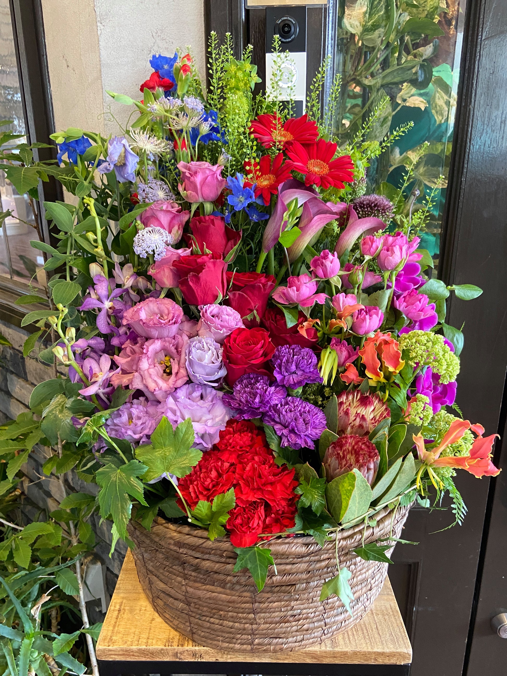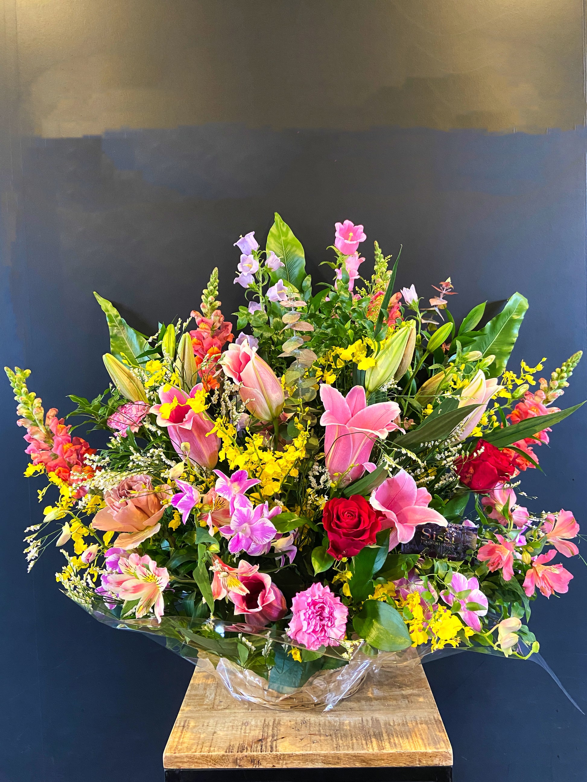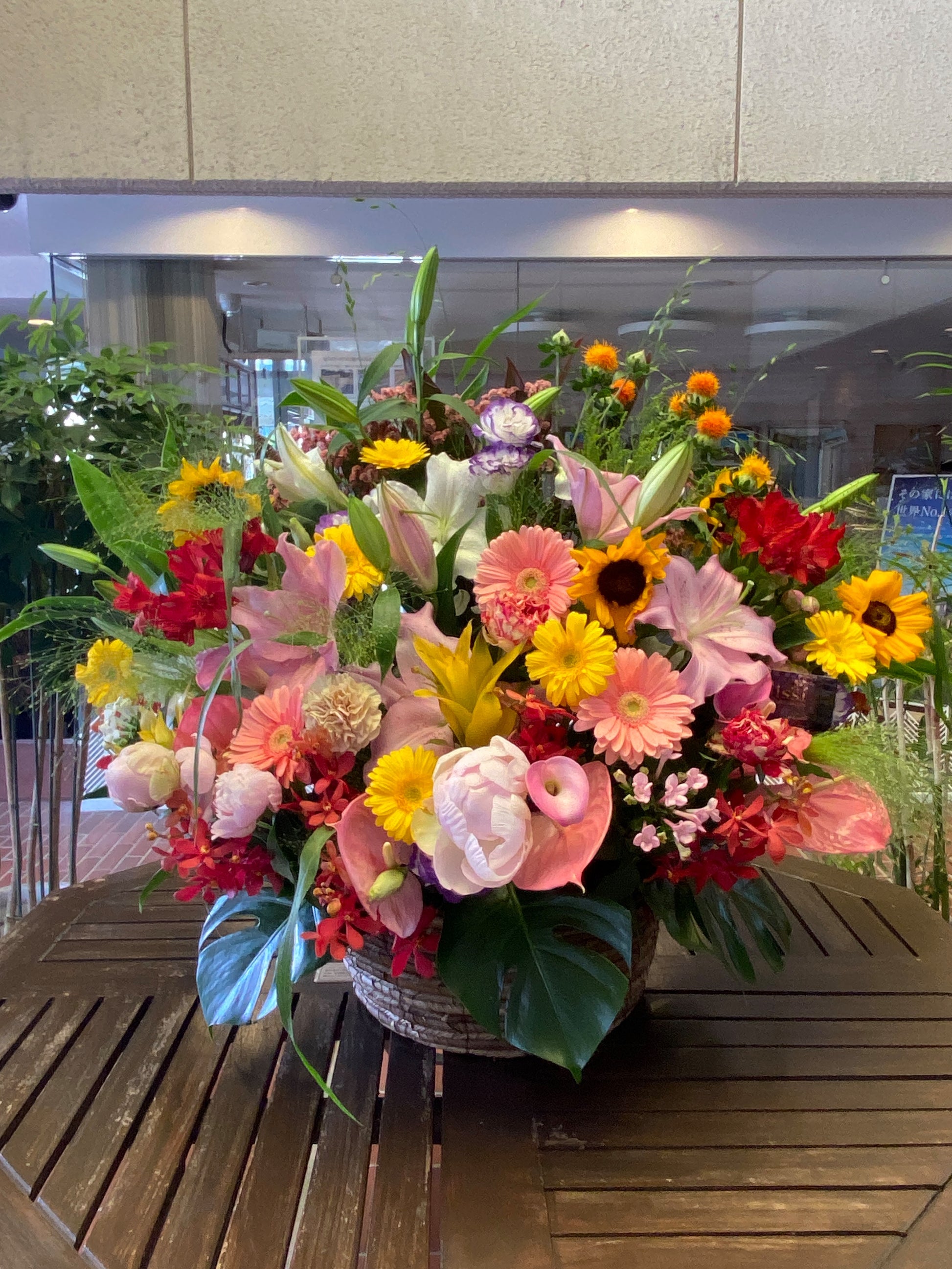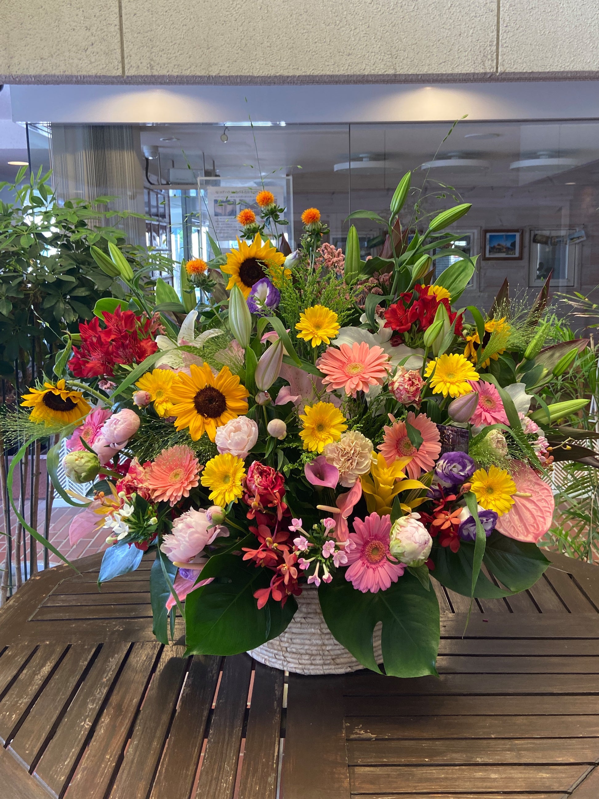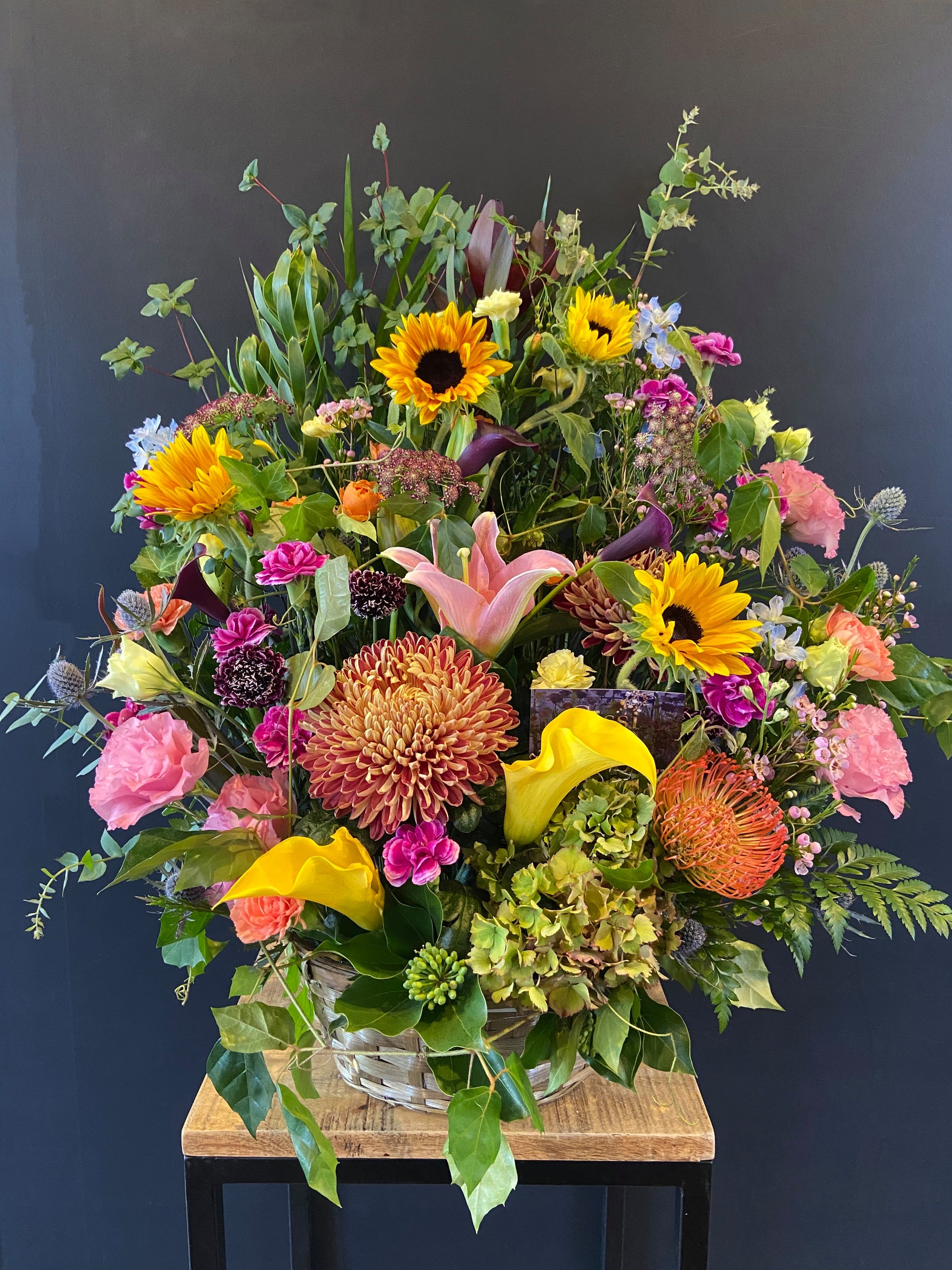 おまかせフラワーアレンジメントになります。 高さのあるスタンダートフラワーアレンジメント。