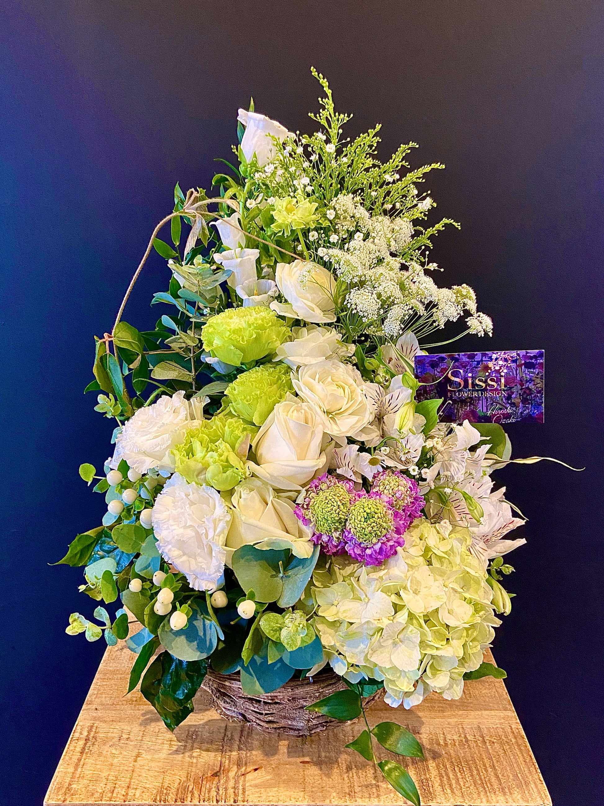 フラワーアレンジメントは国家検定フラワー装飾技能士1級とドイツ政府認定フローリスト資格を持った名店花屋で修行してきたプロのデザイナーが一つずつ制作致します。