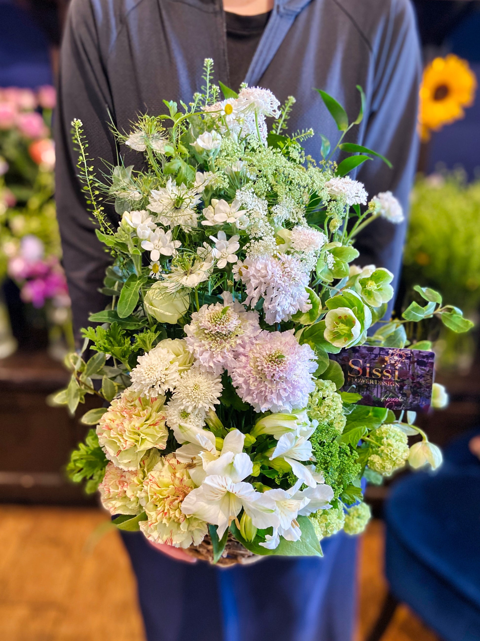 フラワーアレンジメントは国家検定フラワー装飾技能士1級とドイツ政府認定フローリスト資格を持った名店花屋で修行してきたプロのデザイナーが一つずつ制作致します。
