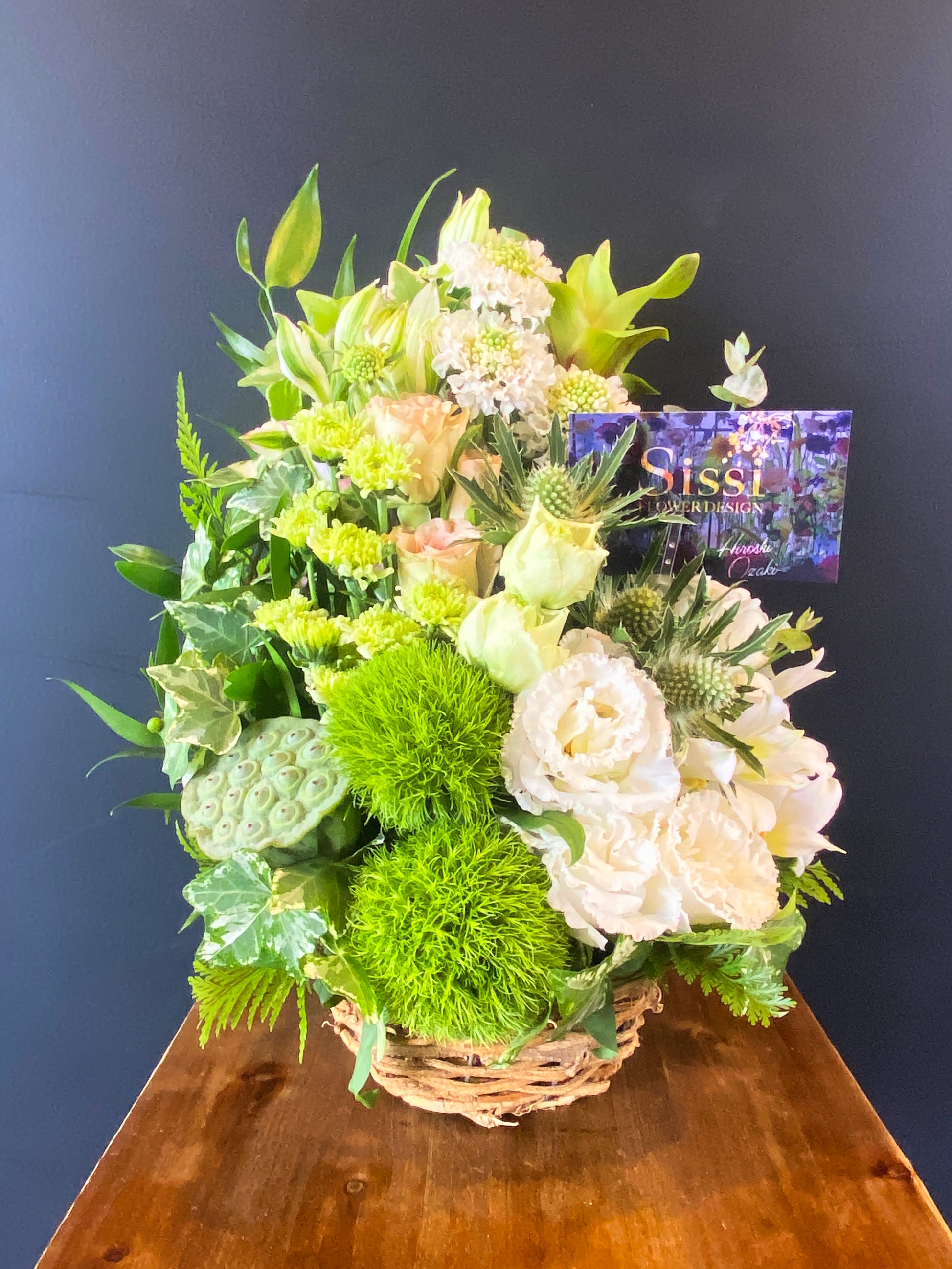 花の方は基本おまかせにさせていただいておりますが、ご要望があればお伝え下さい。