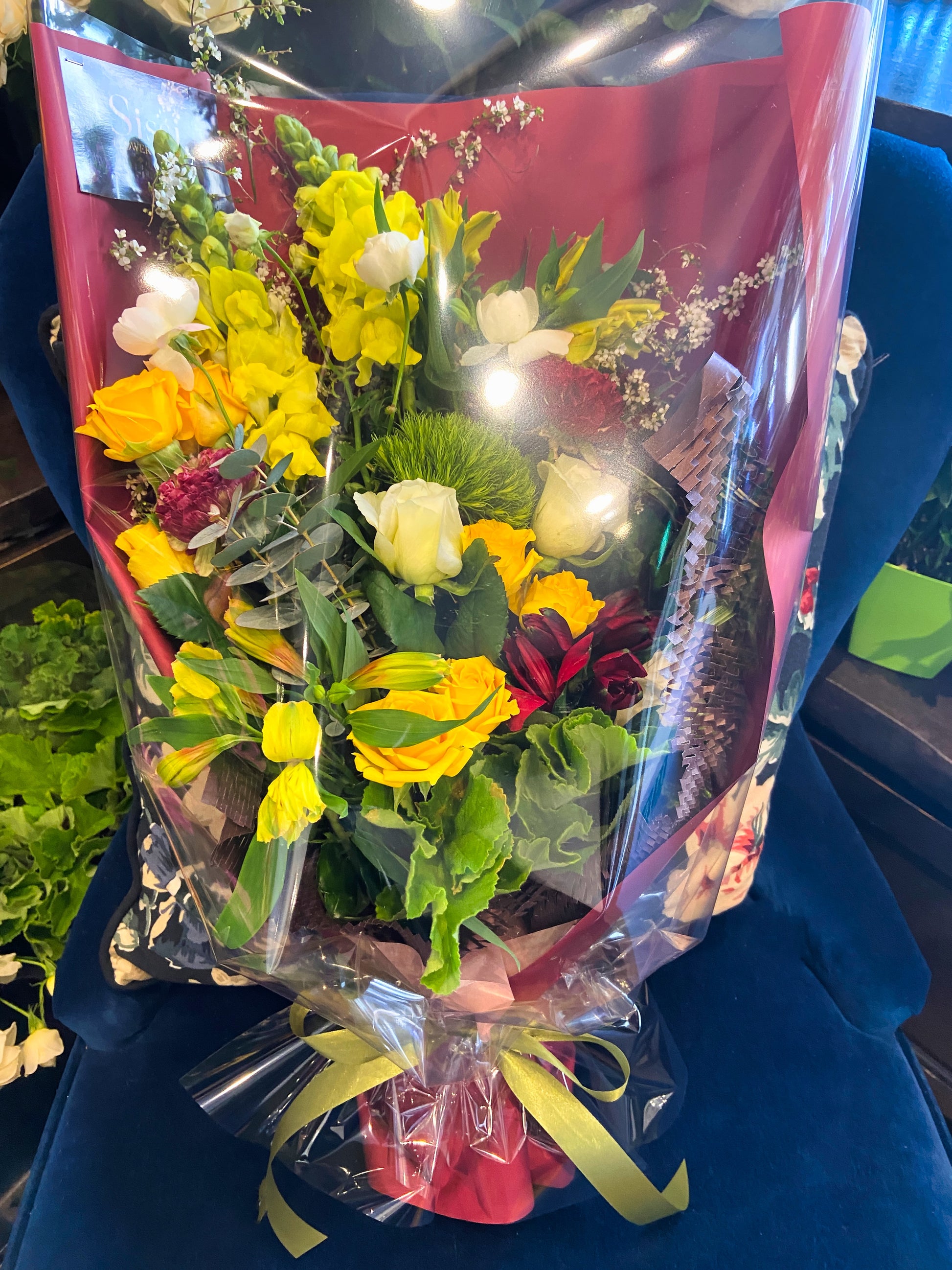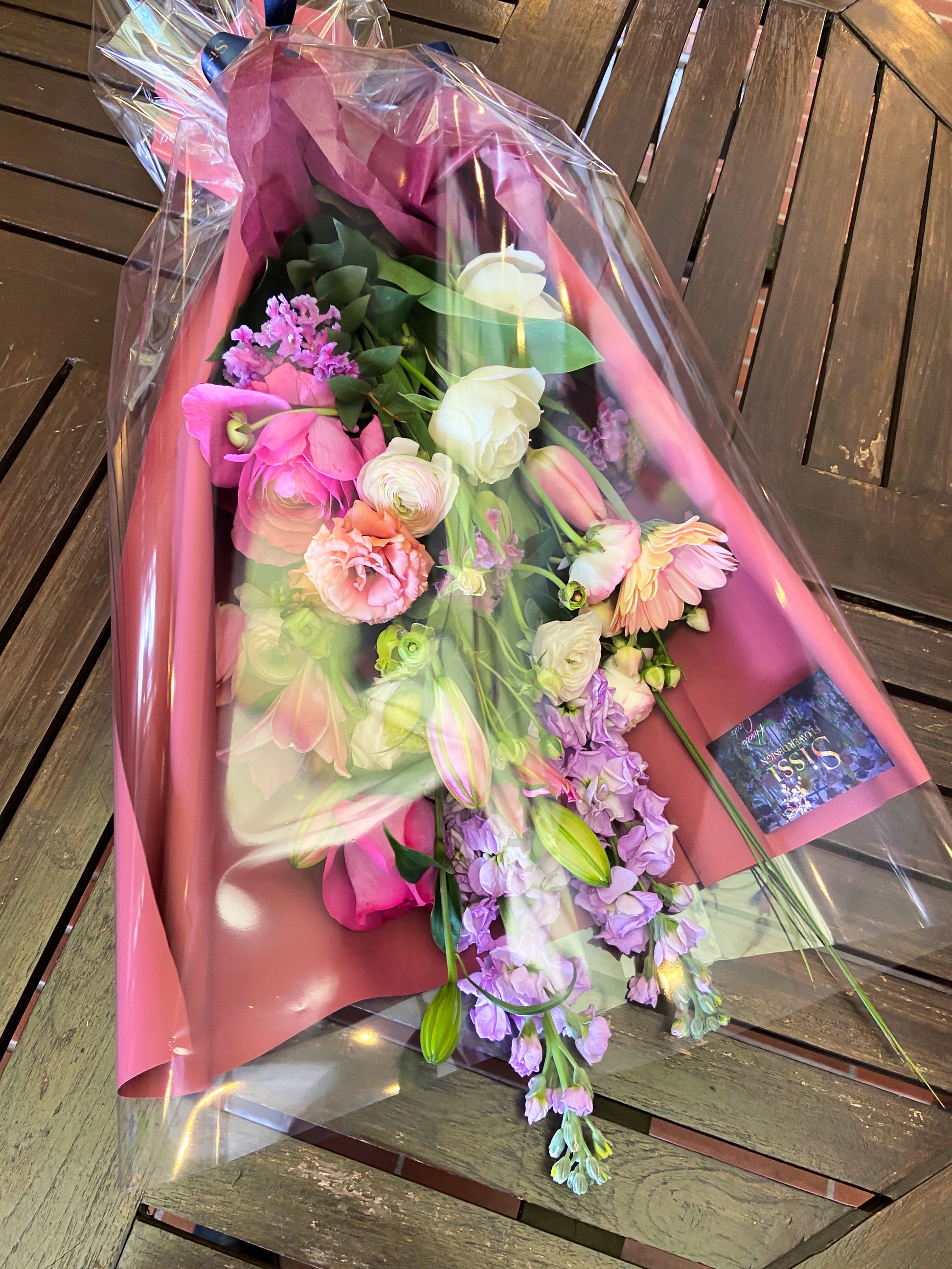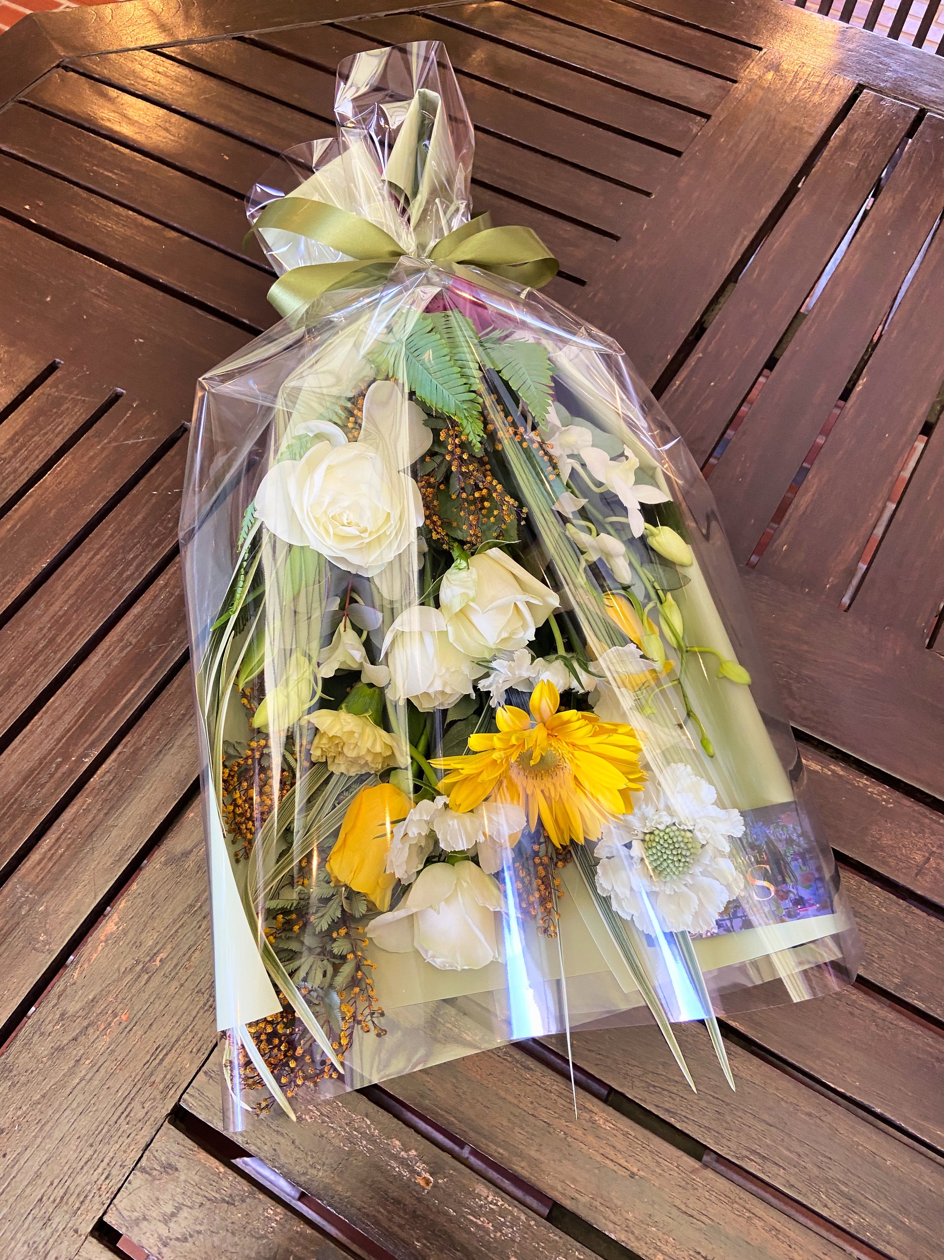 花束はドイツ政府認定フローリスト資格と国家検定フラワー装飾技能士1級など持った名店花屋で修行してきたプロのデザイナーが一つずつ制作致します。花の方は基本おまかせにさせていただいておりますが、ご要望があればお伝え下さい。