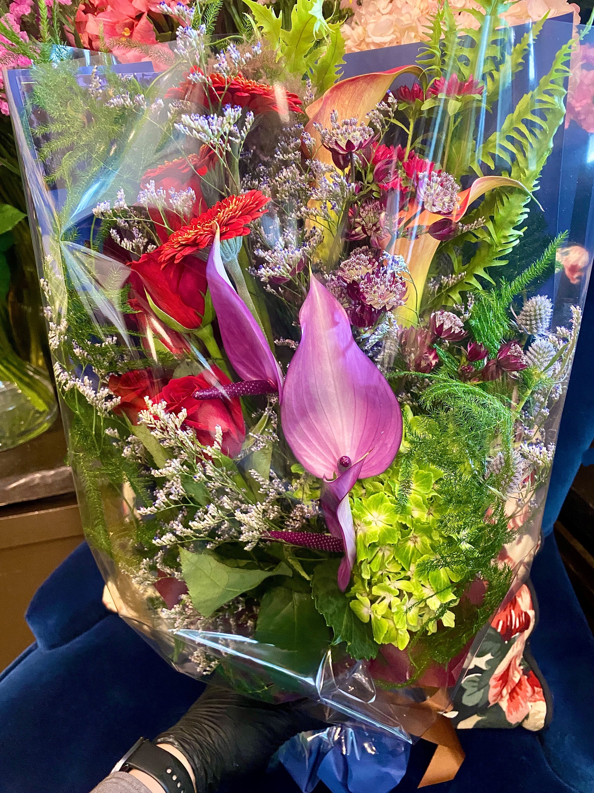こちらの商品は高さがあり、抱えて持つタイプの花束になります。大きさを重視したい時や男性などにもぴったりな花束になります。オシャレにアレンジいたしますので普通とは違う1ランク上のオシャレな花束に制作いたします。 「プロのデザイナーに作ってもらいたい...」また「オシャレな花を贈りたい」と思われているお客様にご満足していただけると思います。